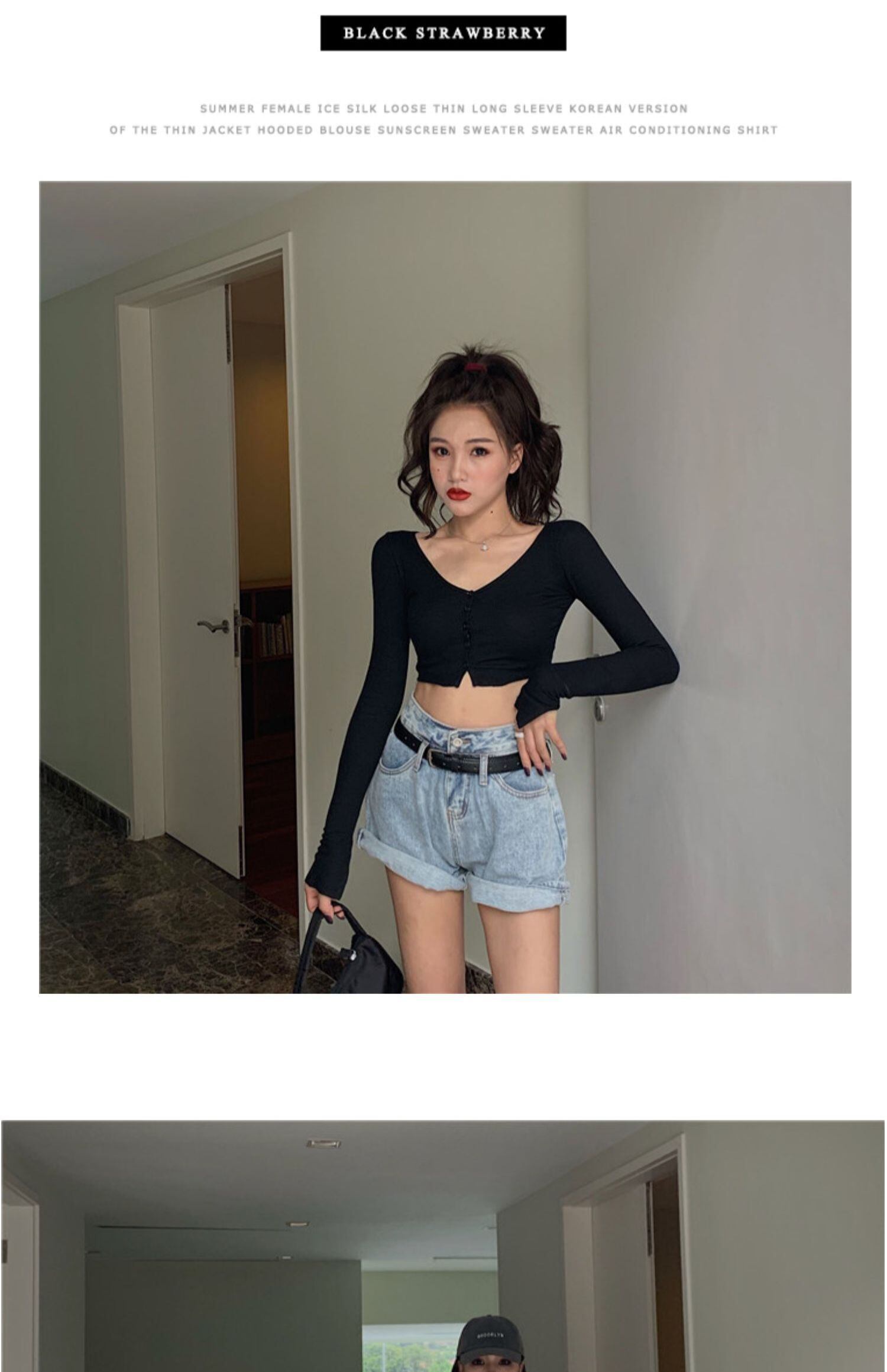 ショートクロップドVネックホワイトTシャツ シャツ レディーススプリングサマートップス ロング 春物 夏物 ブラックストロベリース83693740164