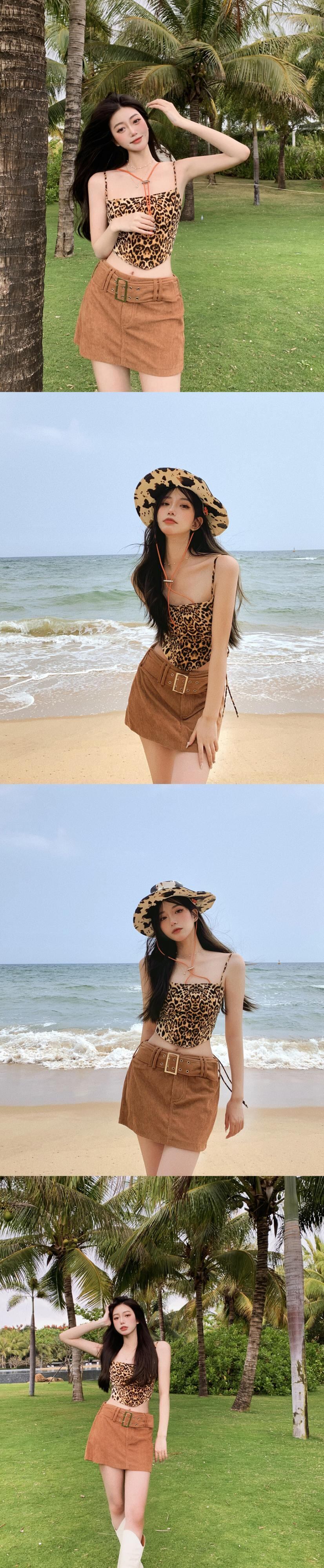 レオパードプリント柄サマートップス ショートコート 夏物 ヨーロピアン ブラックストロベリース14165181356