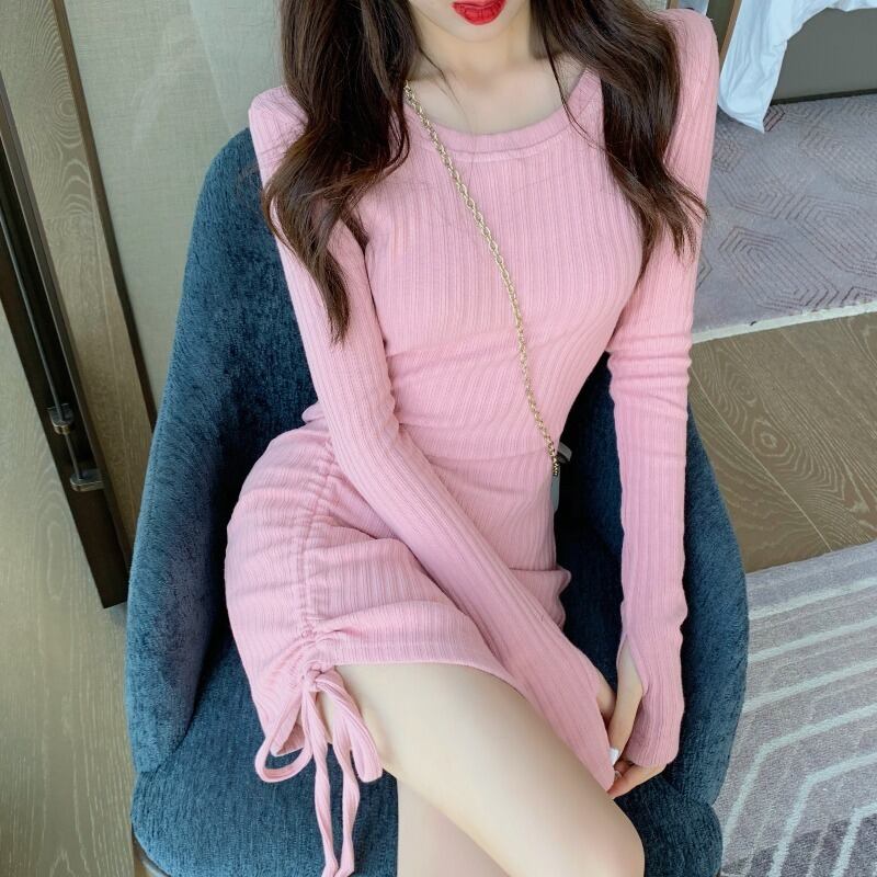 ニットドレス スリムウェストショートスカート スプリング ロング 春物 ブラックストロベリース66175671487
