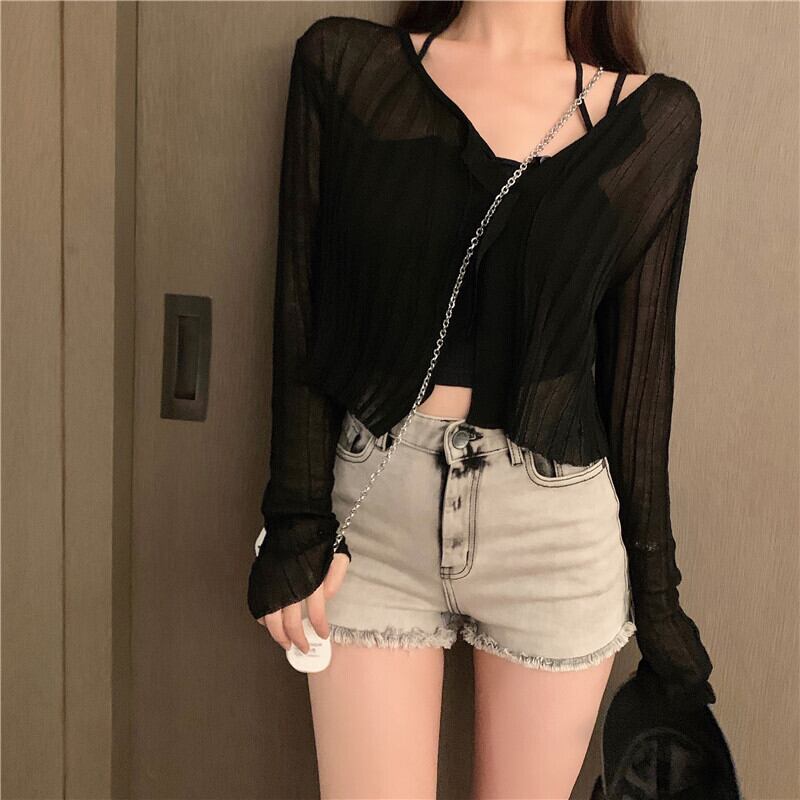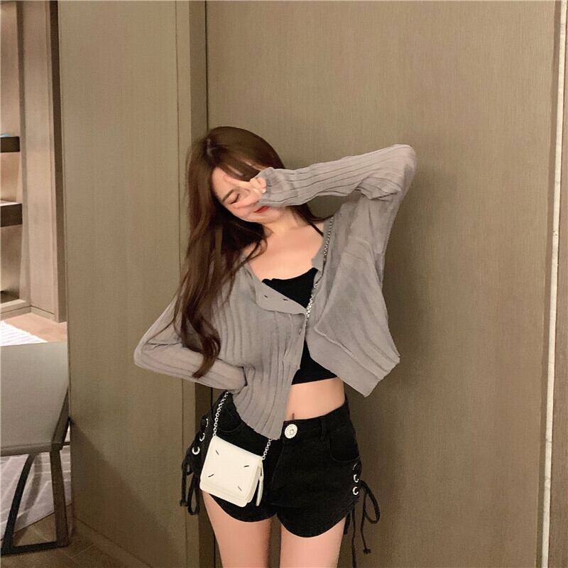 ニットセーター ショートスリムブラックスタイルシャツ スプリングトップス 春物 ブラックストロベリース58471833758
