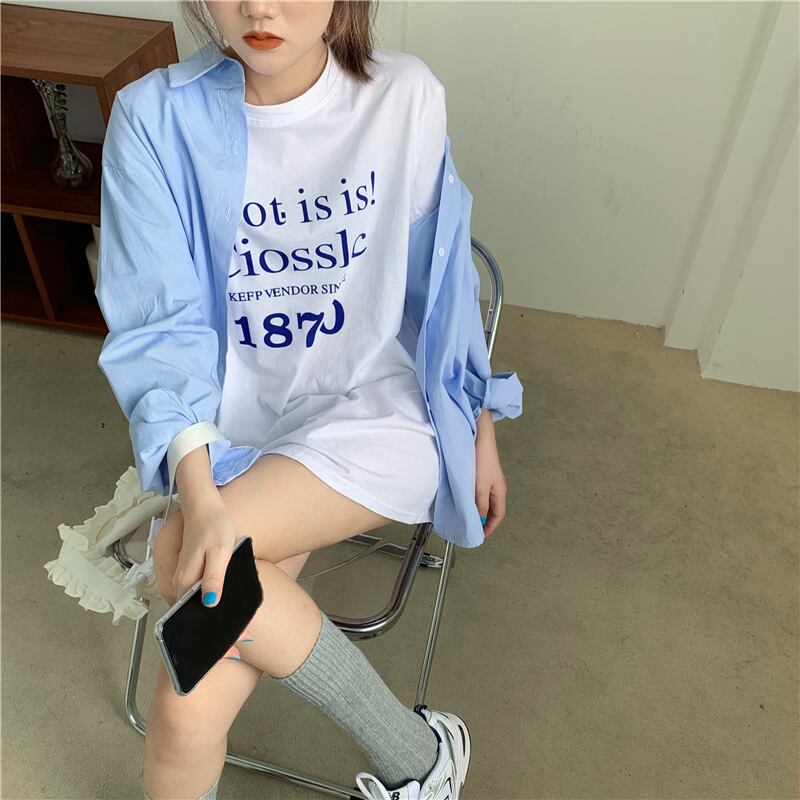 色:ホワイトT,青いシャツ