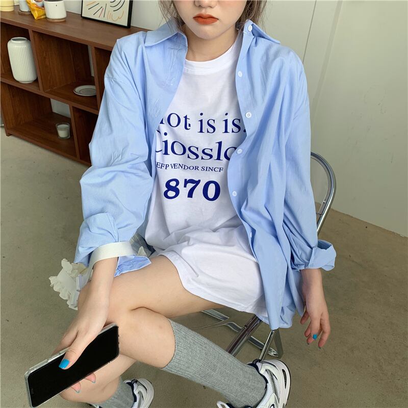 ルーズブルーシャツ ジャケット スプリングブラウス ロング 春物 ブラックストロベリース87740715552