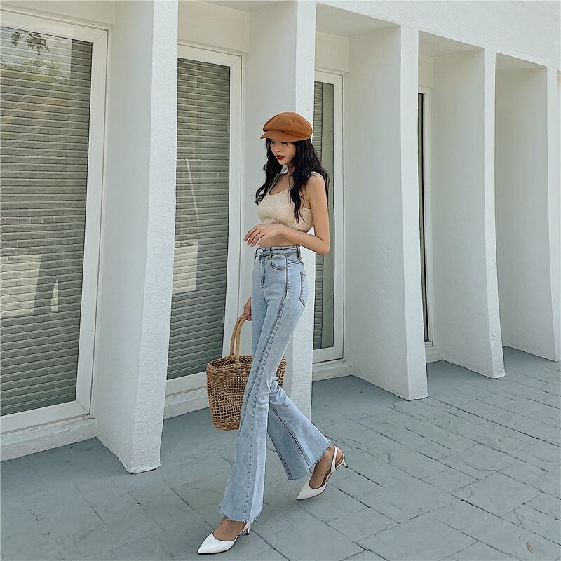 ジーンズ スタンダードハイウェストサマー薄手パンツ レトロ 夏物 ブラックストロベリース50417712597