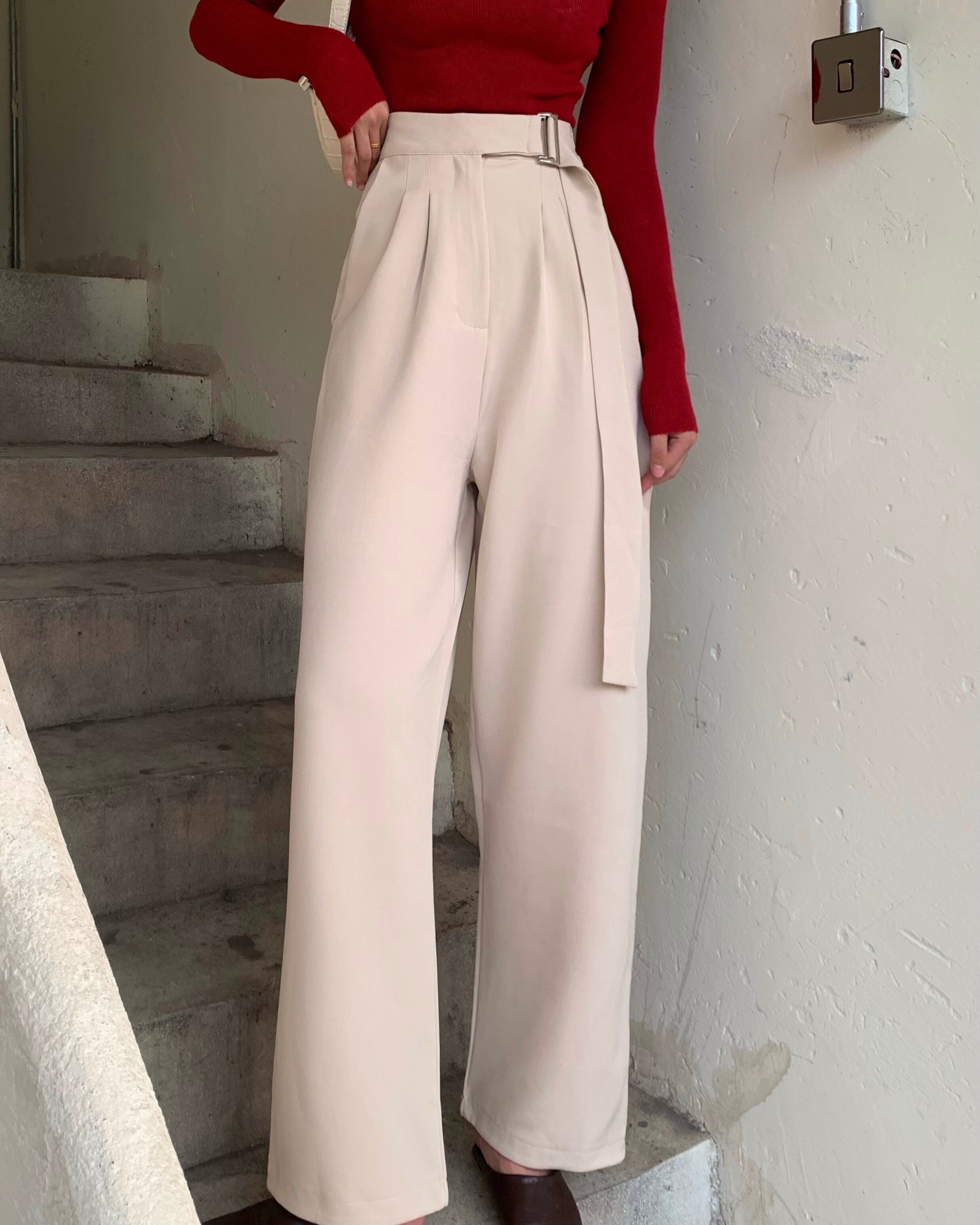 ワイドレッグパンツ レディースルーズハイウェストウェストスリムスプリングホワイトカジュアル 春物 ワイドパンツ ブラックストロベリース14595319686