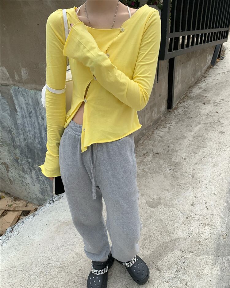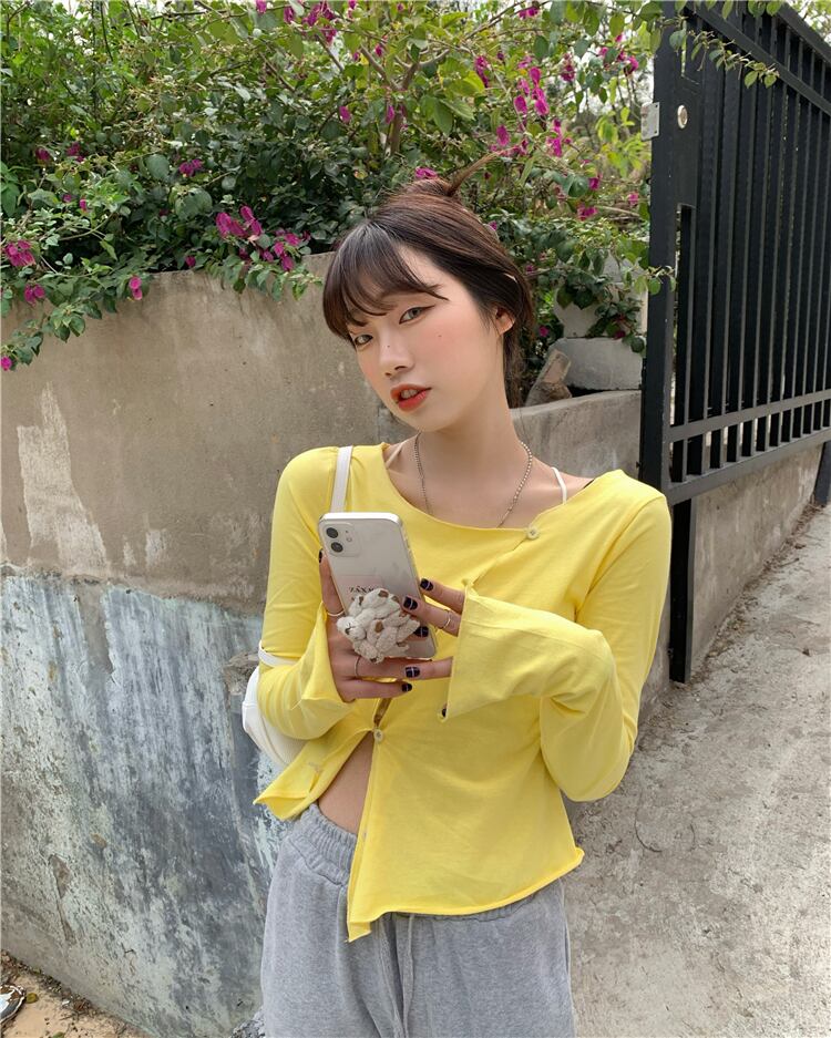 Tシャツ シャツ サマー薄手ショートスリムイエロートップス ロング 夏物 ブラックストロベリース1205196850