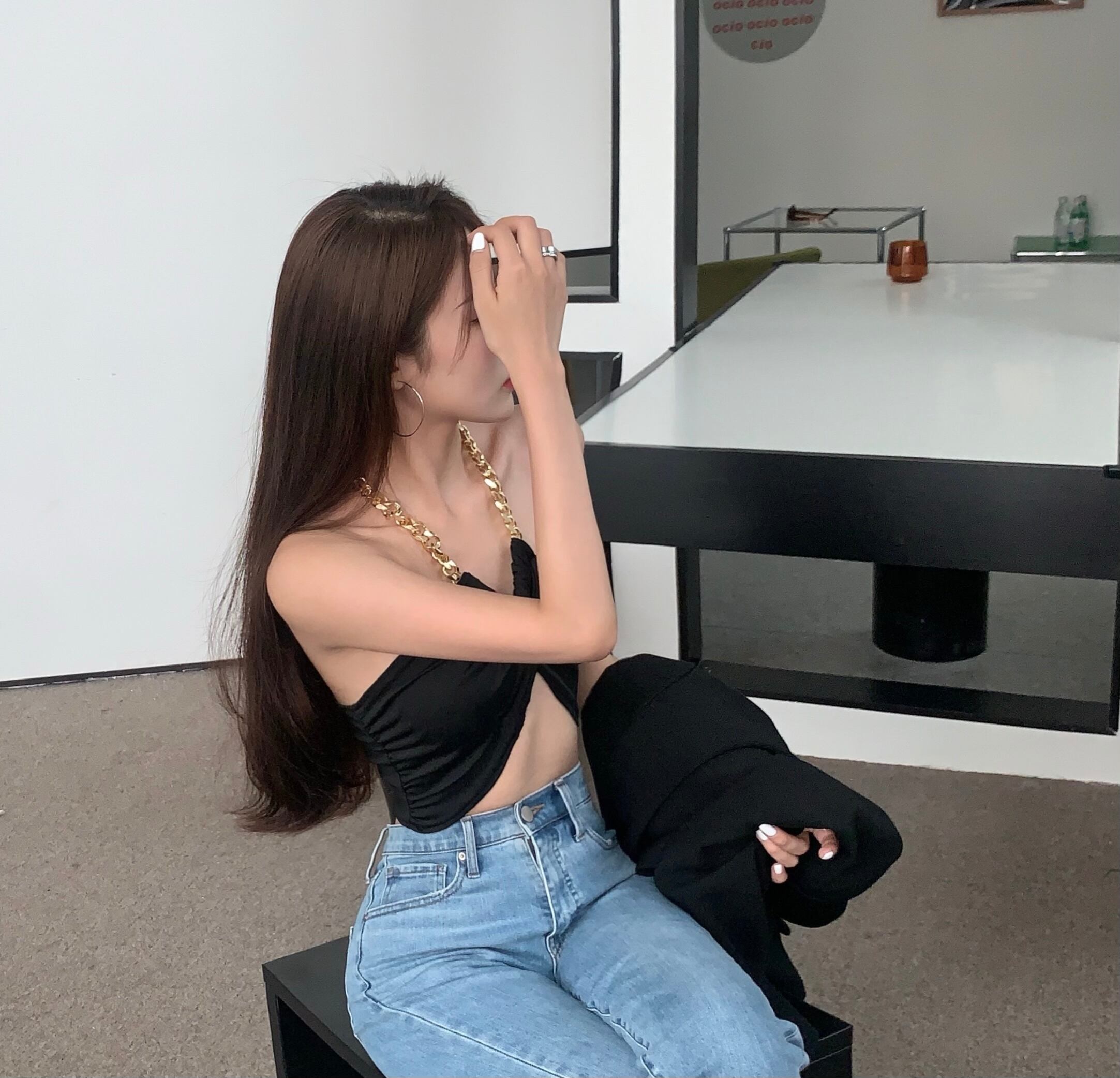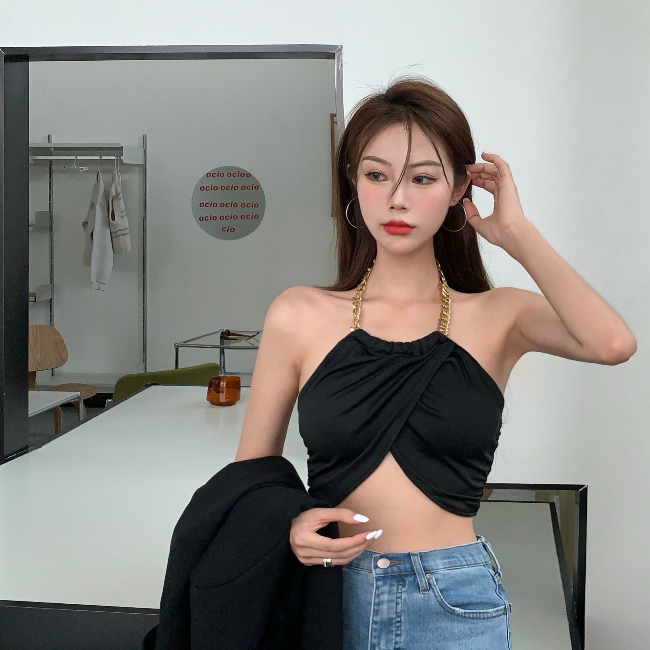 チェーン ホルターサマーブラックトップス 夏物 ヨーロピアン ブラックストロベリース37084497986