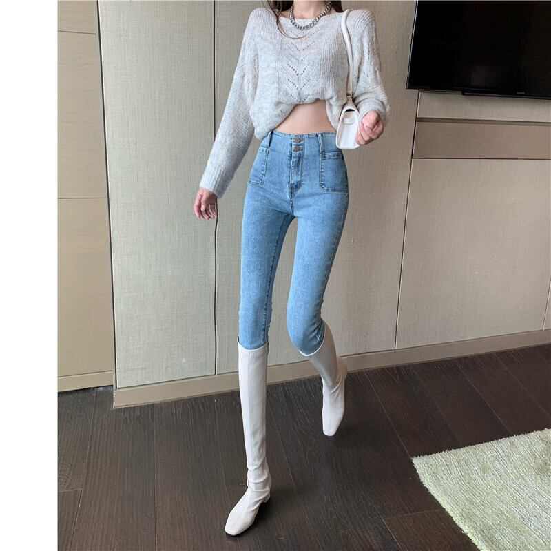 ジーンズ ウェストスリムスキニーパンツ スプリング薄手 春物 スリムヒップ ブラックストロベリース60138050778