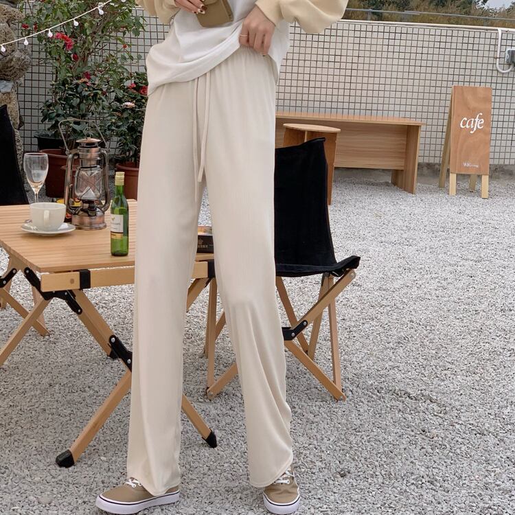 パンツ ブラックルーズスプリングハイウェスト薄手カジュアル 春物 ブラックストロベリース7858105294