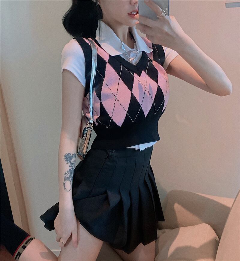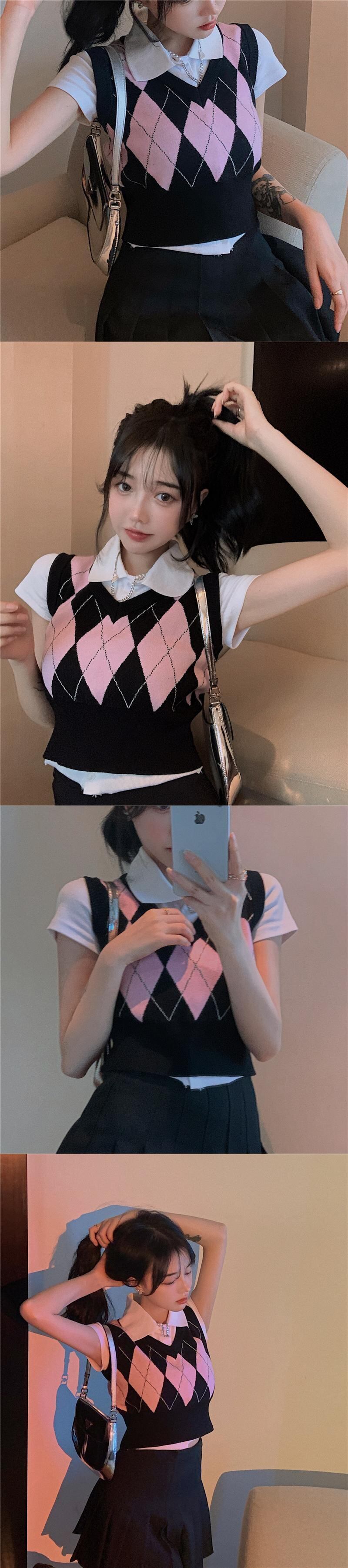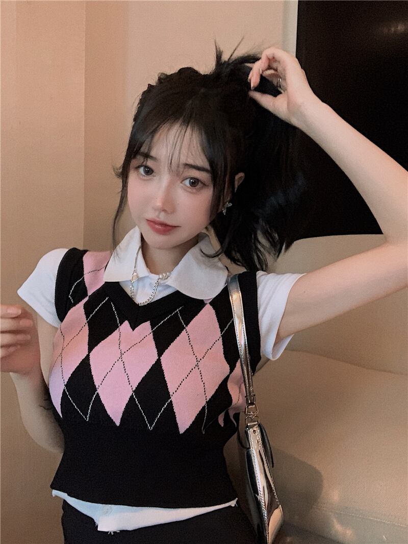 色:ピンクのベスト,青いベスト,白のポロシャツ