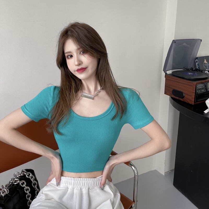 スタイルTシャツ サマーショートクロップドトップス コットン 夏物 ピュア ブラックストロベリース80127146