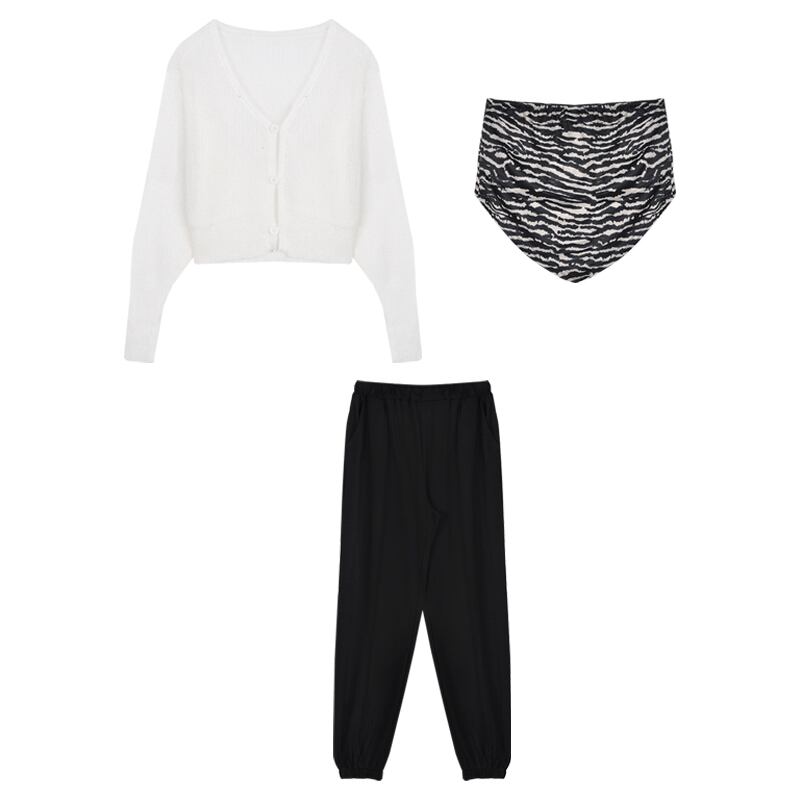 色:レースアップパンツ,ホワイトニットカーディガン,ゼブララップ