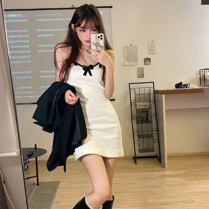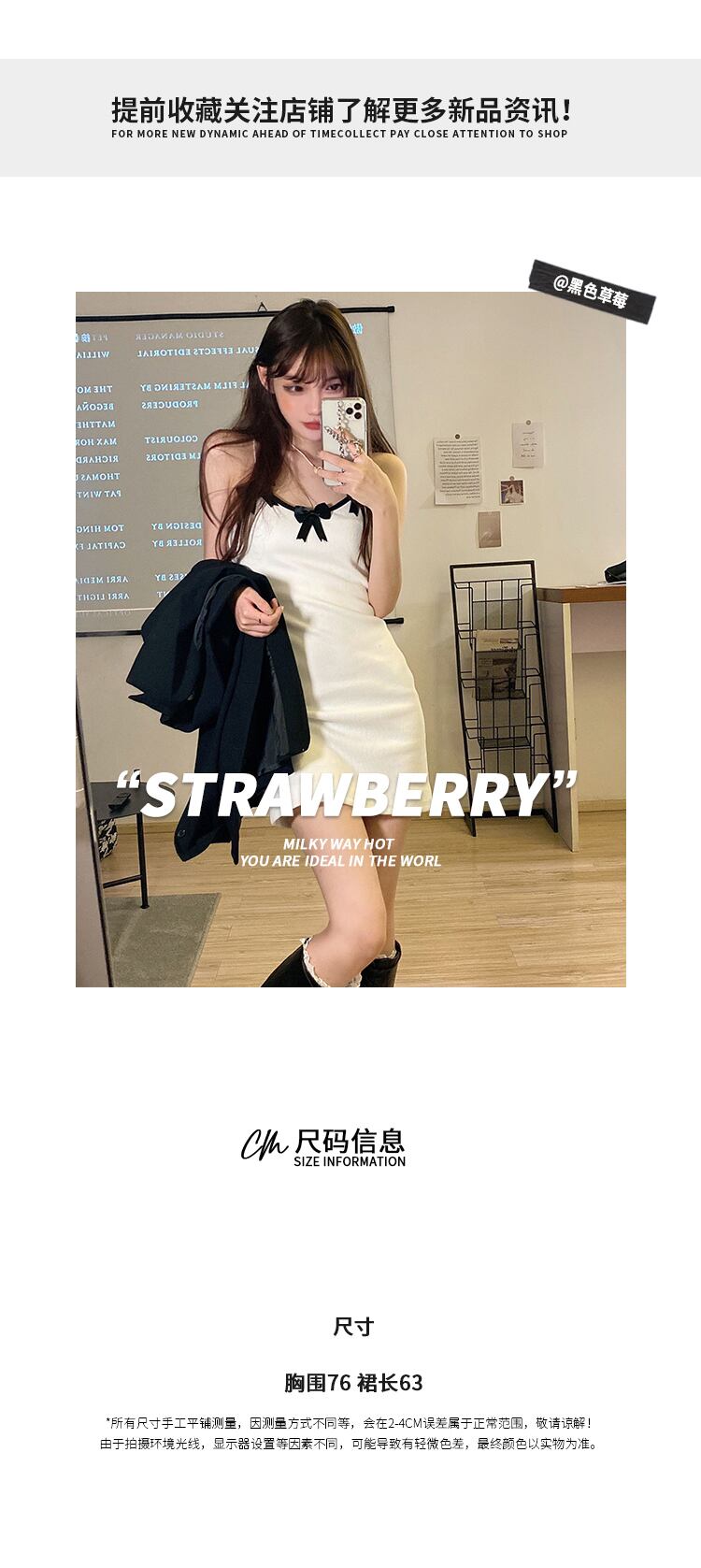 ドレス スカート スプリングサマースタンダード リボン レトロ 春物 夏物 ブラックストロベリース37547493759