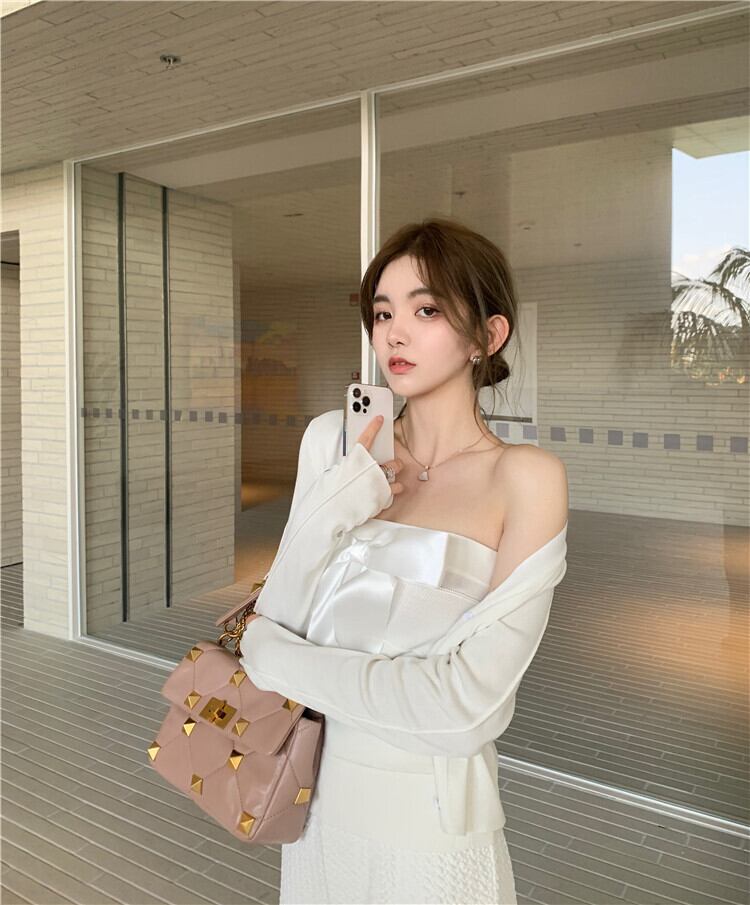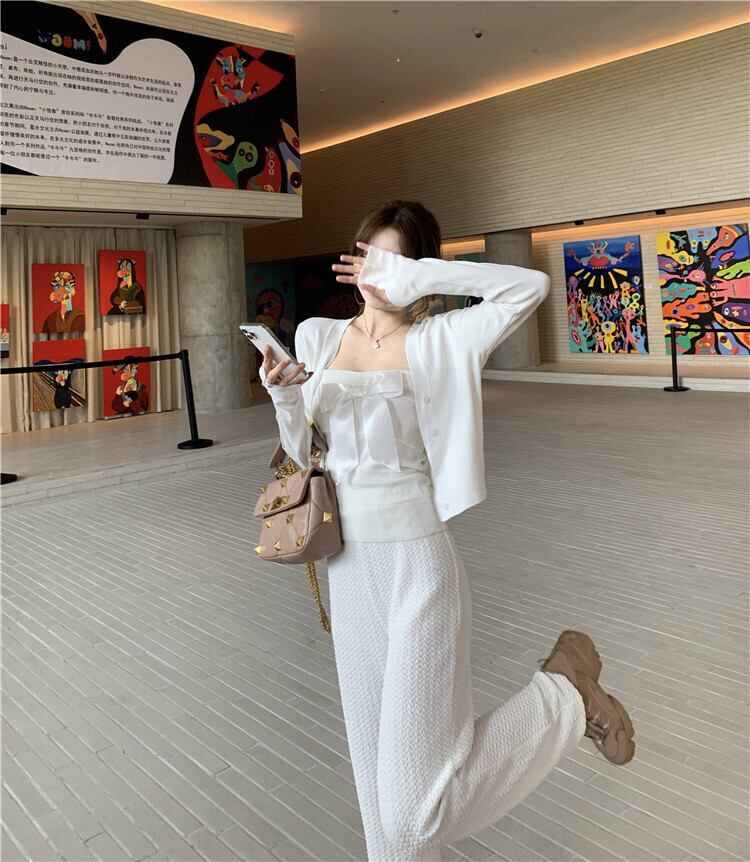 ショートニットセーター ホワイト薄手トップス スプリングオータムスタンダードスタイルカーディガンジャケット レトロ 春物 秋物 ブラックストロベリース24893709885