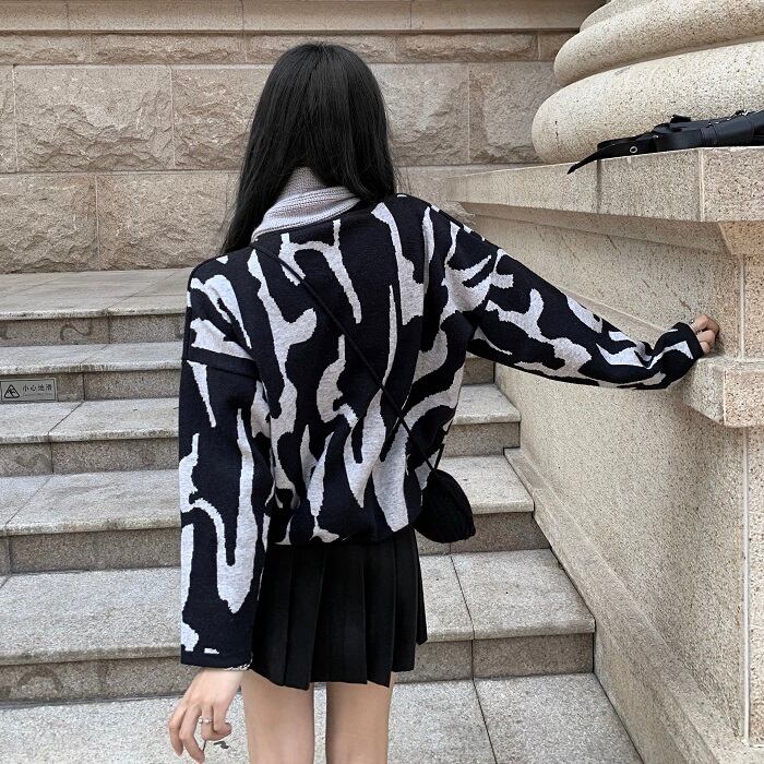 セーター ルーズスタンダードスタイルラウンドネックスプリングカラープルオーバー トップス レトロ 春物 Oネック ブラックストロベリース36048785433