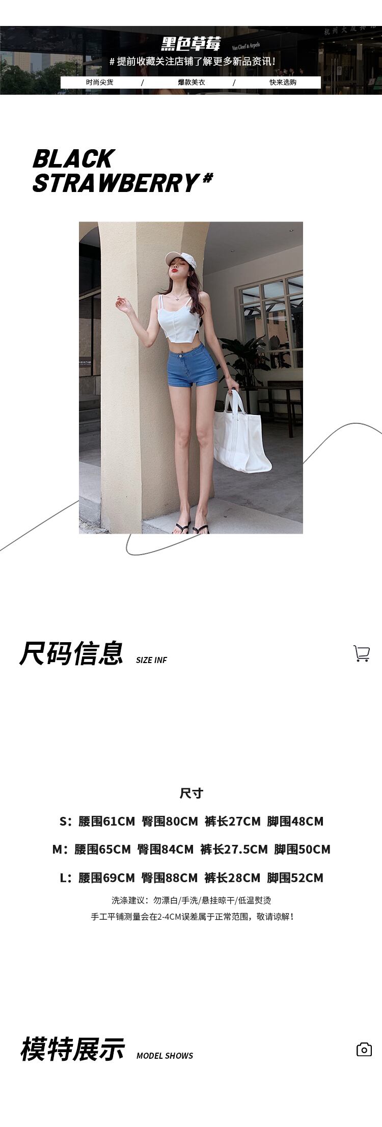 ジーンズ ストレッチハイウェストウェスト薄手ショーツ スプリングサマーパンツ エラスティック 伸縮 春物 夏物 ブルマー ブラックストロベリース84820480983