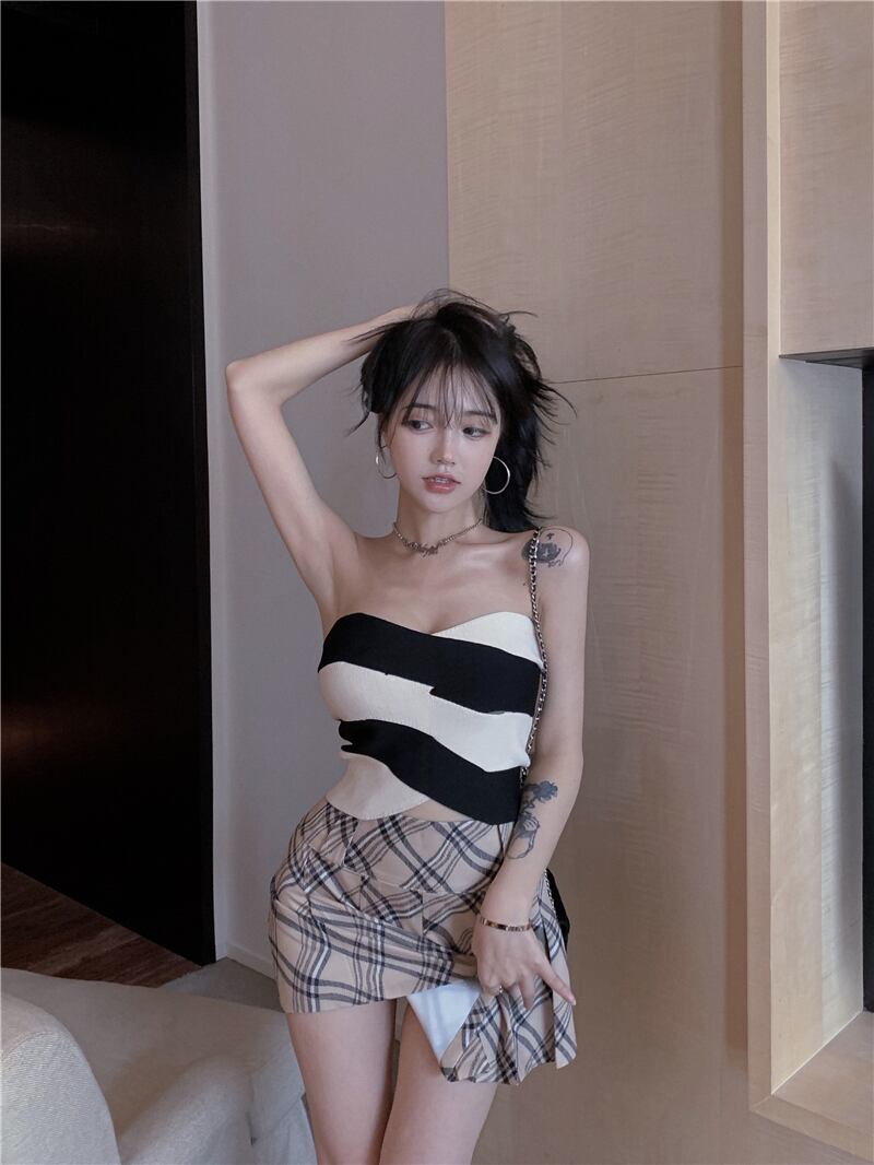 ニットトップス サマーストライプバックコート 夏物 ブラックストロベリース99130731542