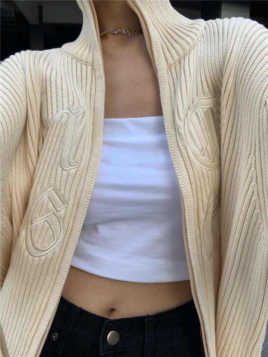 ジッパーカーディガンジャケット スプリングスタンダードスタイルルーズニットトップス セーター レトロ 春物 ブラックストロベリース23995342208