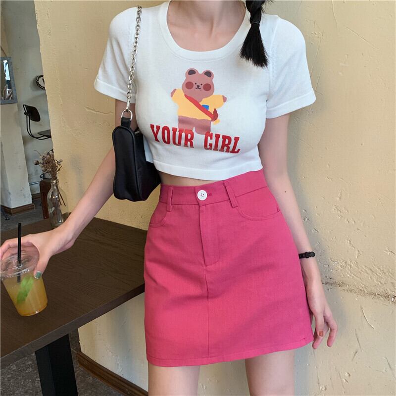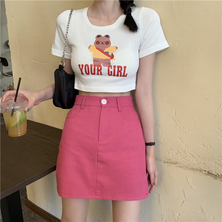 スカート ハイウェストウェスト薄手レッドショートスプリングサマー 春物 夏物 ブラックストロベリース67664427904
