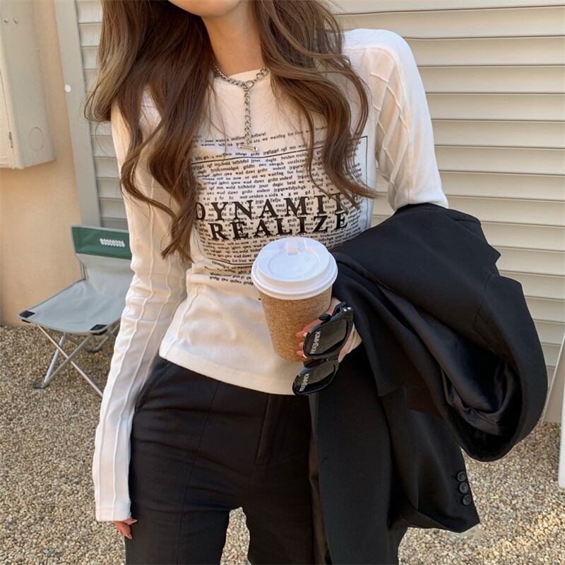 Tシャツ シャツ スプリングサマープリントスリムラウンドネックトップス ロング 春物 夏物 Oネック ブラックストロベリース80125163609