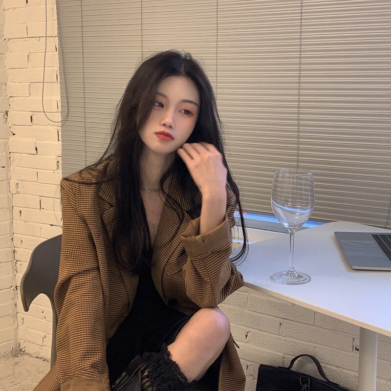 ジャケット スタンダード格子柄ルーズスタイルスプリングカジュアル レトロ 春物 ブラックストロベリース59825205862