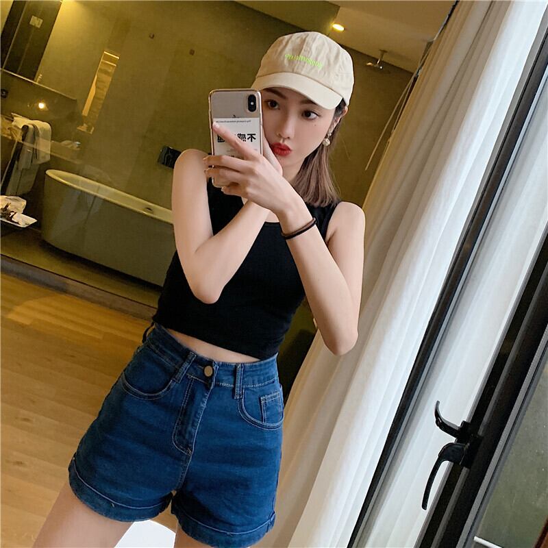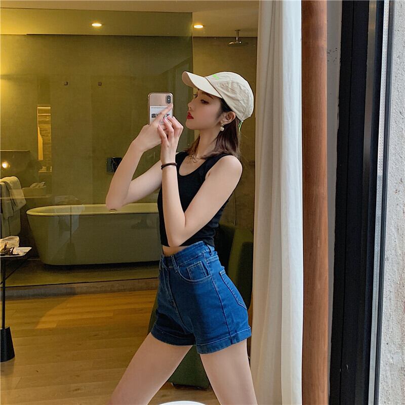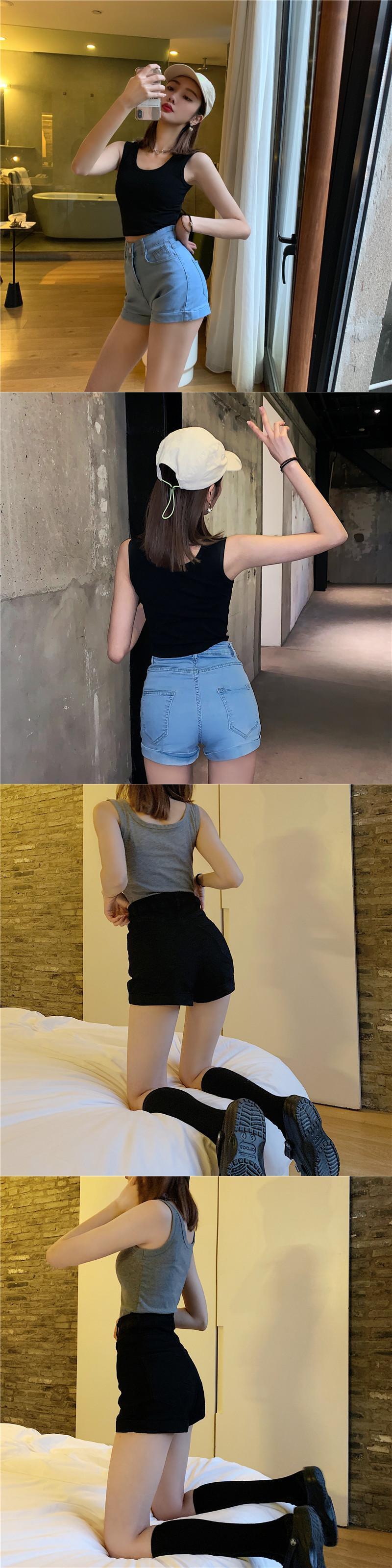 ジーンズ ウェストスリムショーツ サマーパンツ ダークブルー 夏物 ブルマー ブラックストロベリース66789878914