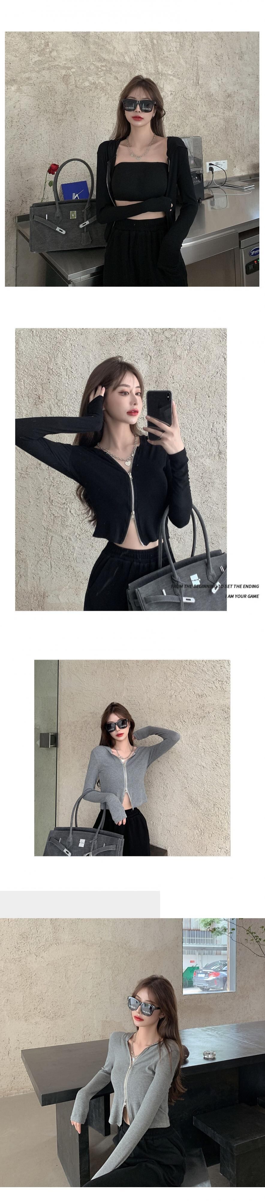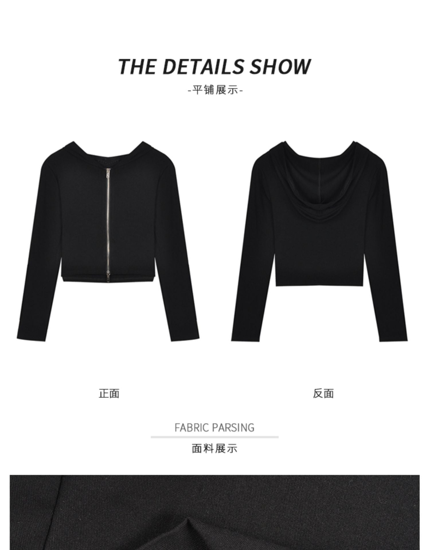 ジッパーブラックフードニットカーディガンレディーススプリングオータムセーター ジャケット クロップドトップス ロング 春物 秋物 ブラックストロベリース43013305485