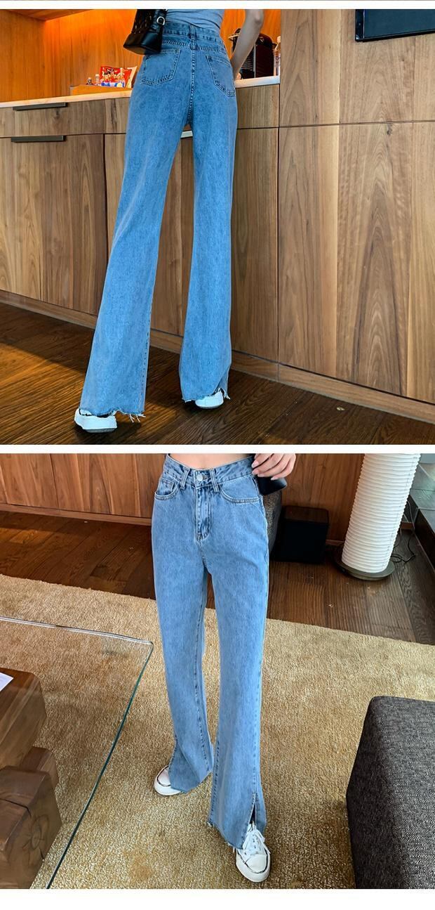 パンツ スプリングサマーハイウェスト薄手ルーズジーンズ 春物 夏物 ブラックストロベリース17170710975
