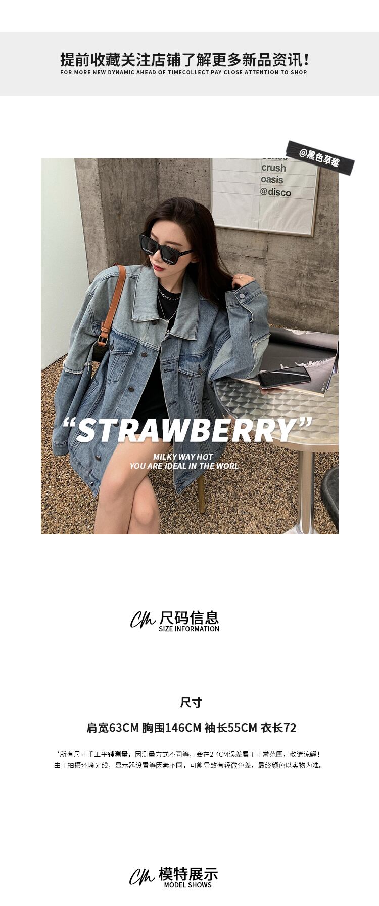 ジャケット ロングルーズカジュアルスプリング 春物 ブラックストロベリース24897302746