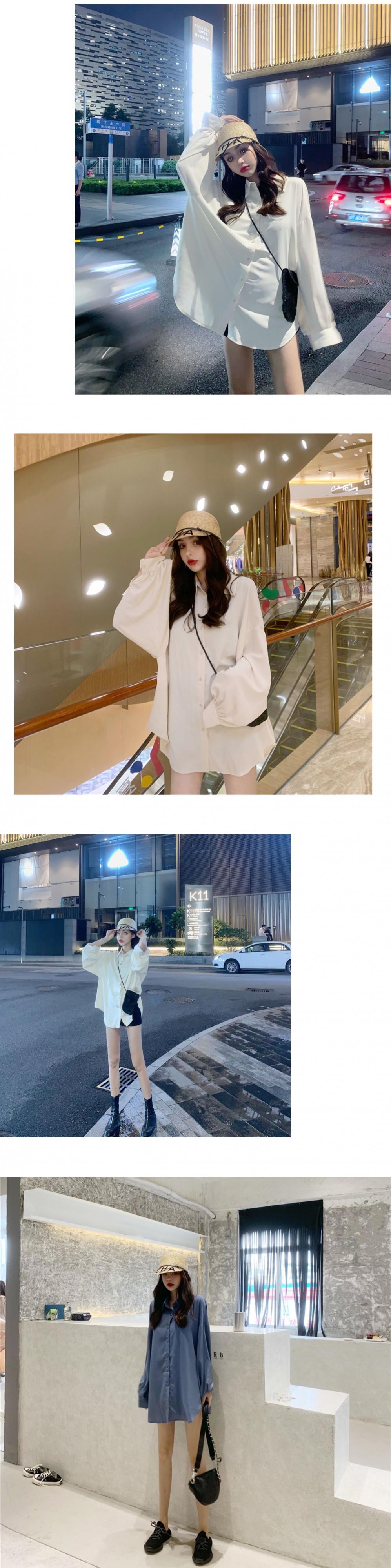 スタイルルーズホワイトシャツ ジャケット スプリングオータムシフォントップス レディース ロング 春物 秋物 ブラックストロベリース45957354610