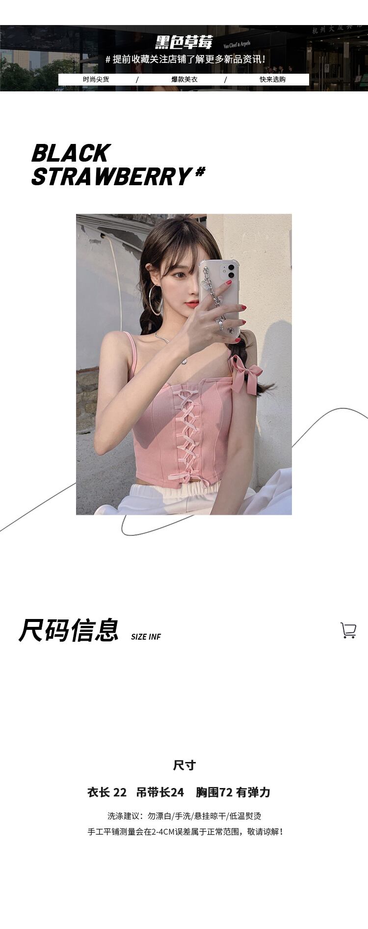 ベルベットサマーストラップ シャツ トップス リボン 夏物 ブラックストロベリース9042906640