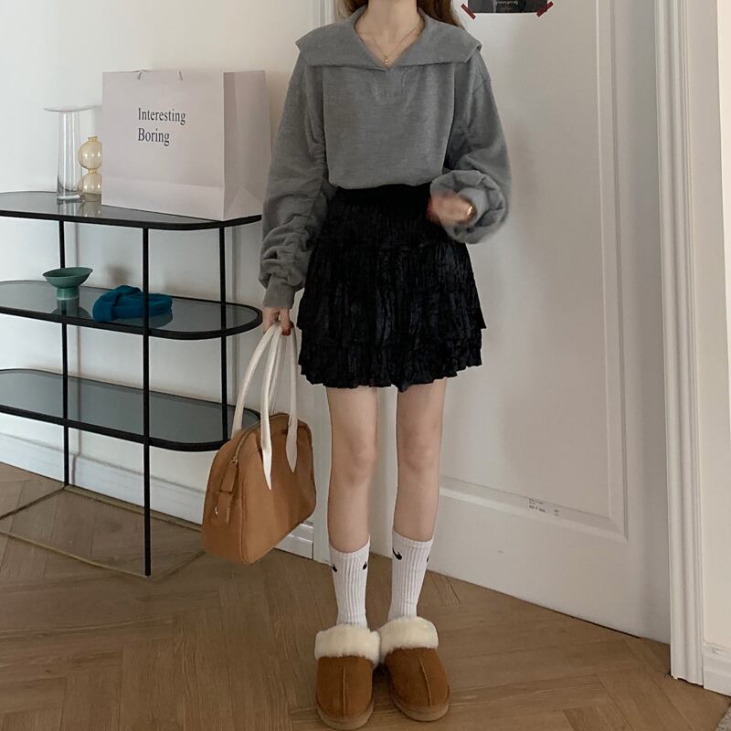 セーター ルーズブラックプルオーバー ブラウス スプリング 春物 ブラックストロベリース96749529856