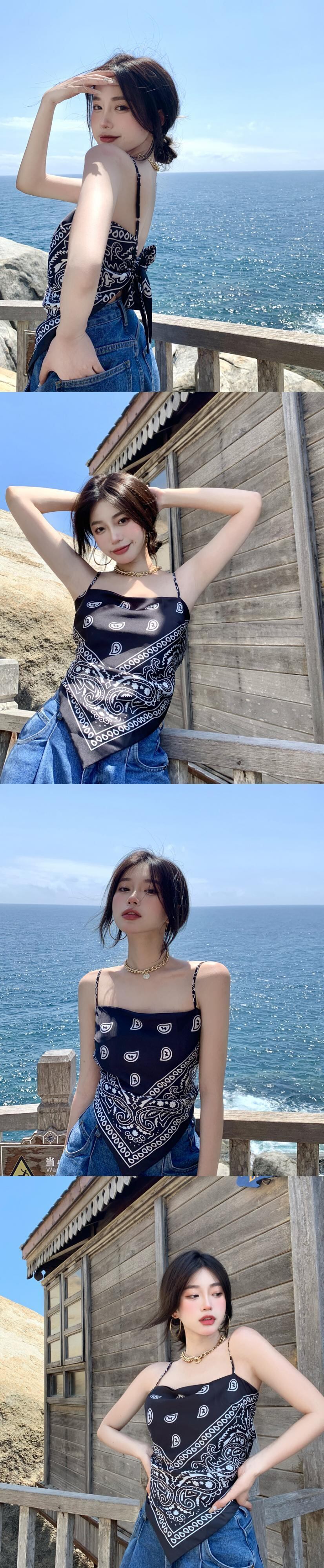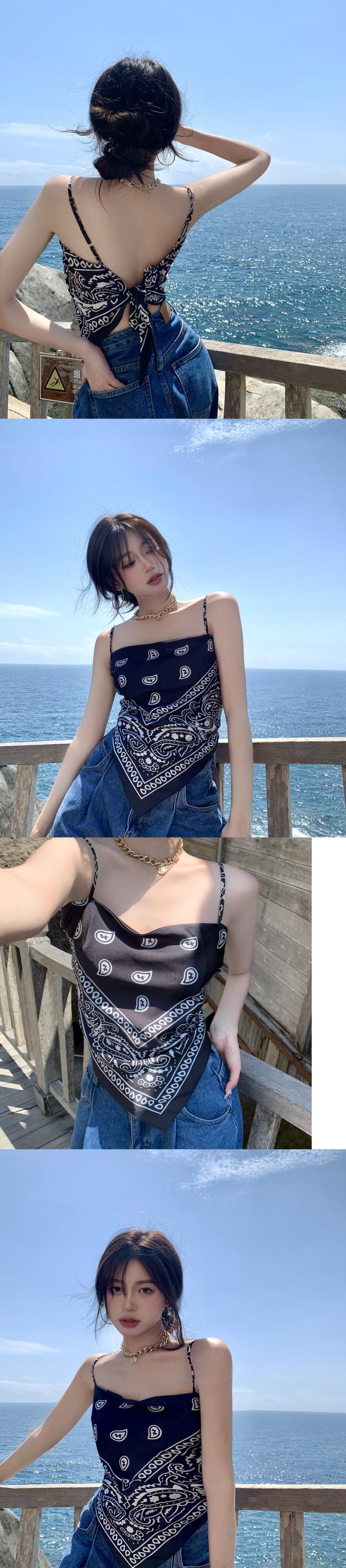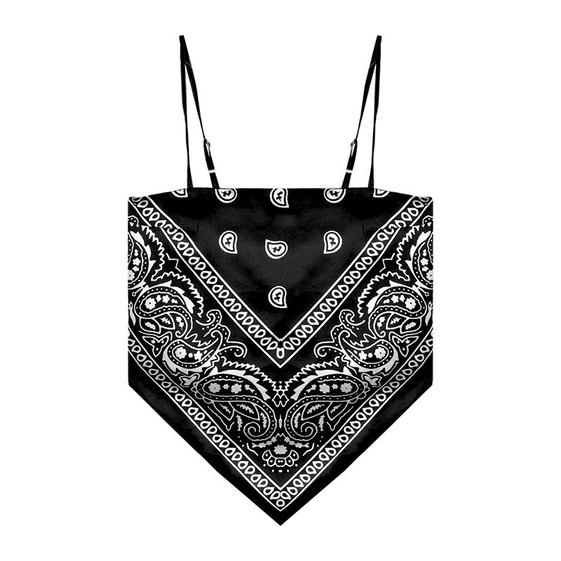 スタンダードプリントスカーフ サマートップス レトロ 夏物 シルク ブラックストロベリース71862132678