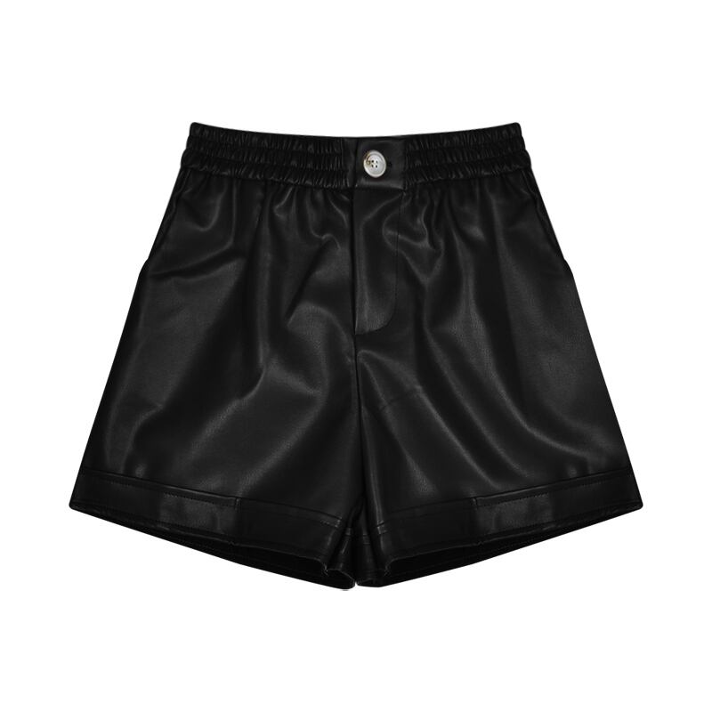 パンツ ハイウェスト薄手ルーズショーツ スプリングブラックレザー 春物 ブルマー ブラックストロベリース82615848312