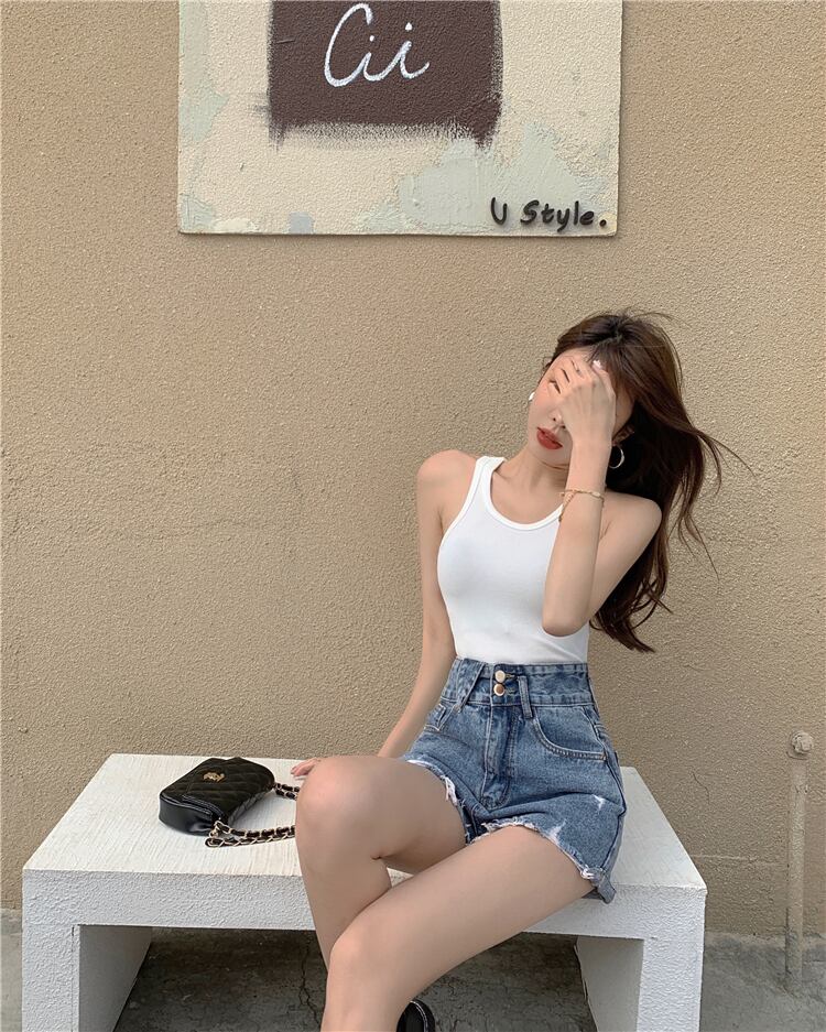 ジーンズ レディースサマー薄手パンツ ハイウェストウェストワイドレッグAラインショーツ 夏物 ブルマー ワイドパンツ ブラックストロベリース81916394814