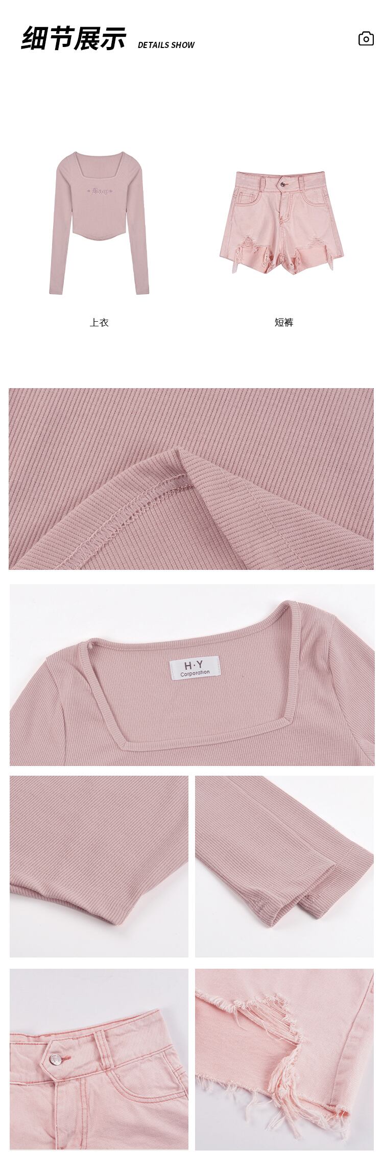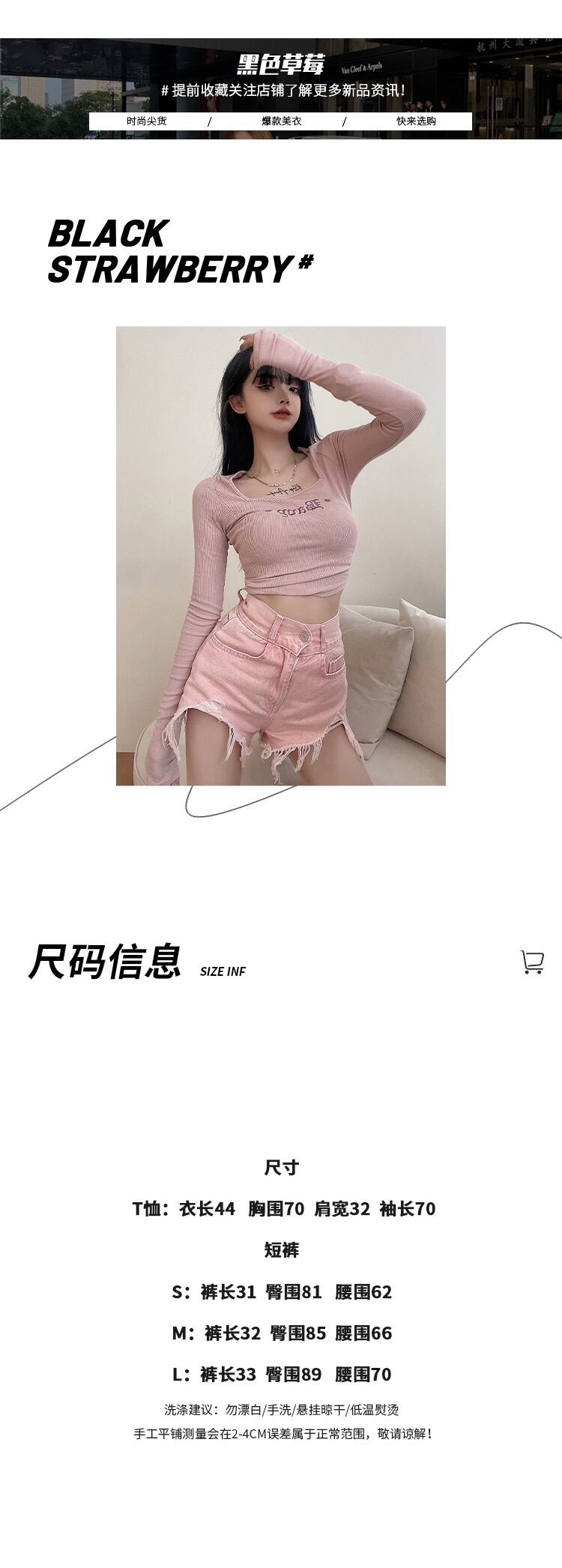 ジーンズ ウェスト薄手ショーツ サマーパンツ ルーズ ピンク 夏物 ブルマー ブラックストロベリース31089353052