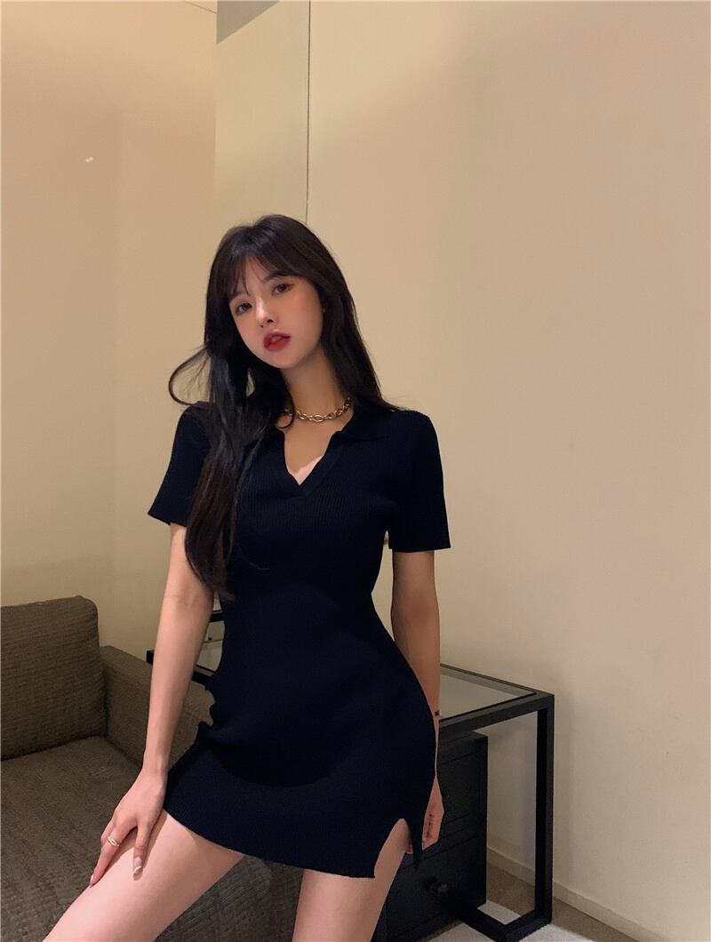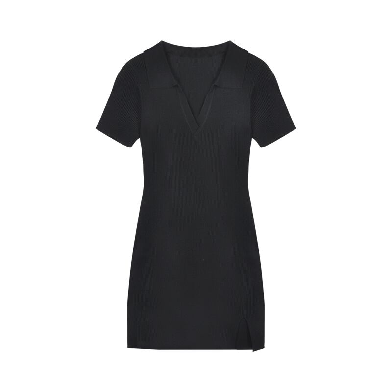 カラーニットドレス サマースカート ブラックウェストスリム 夏物 ブラックストロベリース89634390196