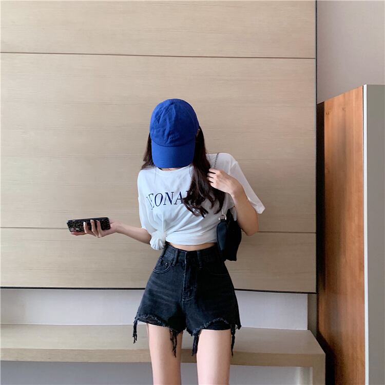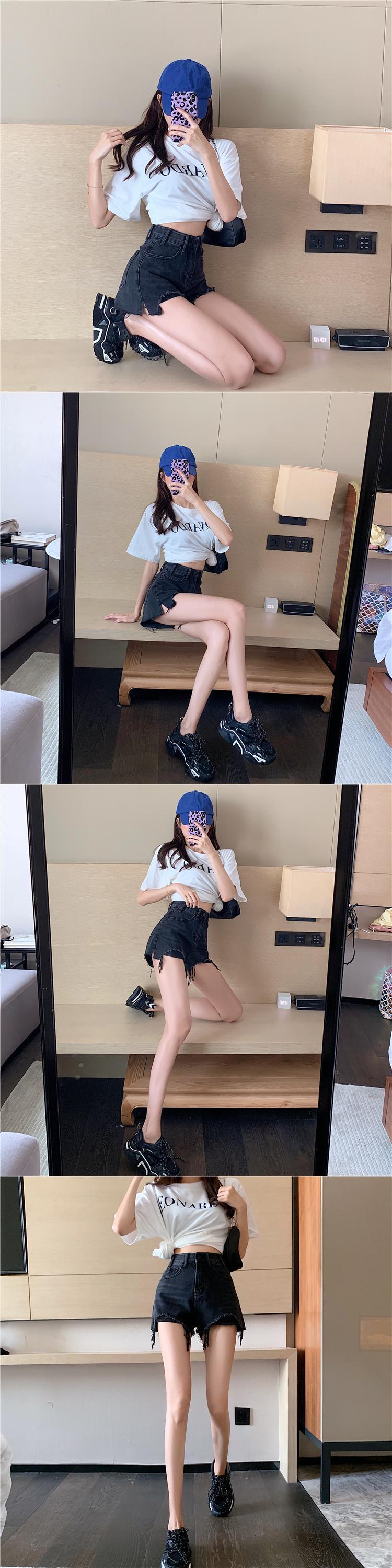 ジーンズ サマー薄手パンツ ショーツ ハイウェストウェストスリム 夏物 ブルマー ブラックストロベリース68078879933