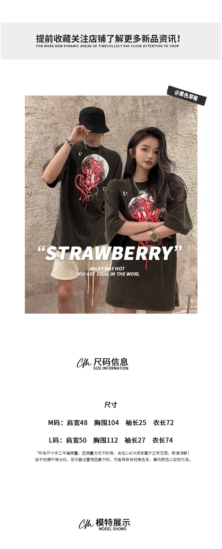 スタンダードプリントTシャツ シャツ サマールーズロング半袖スリーブ ショート レトロ ハーフスリーブ 夏物 ブラックストロベリース88447993982
