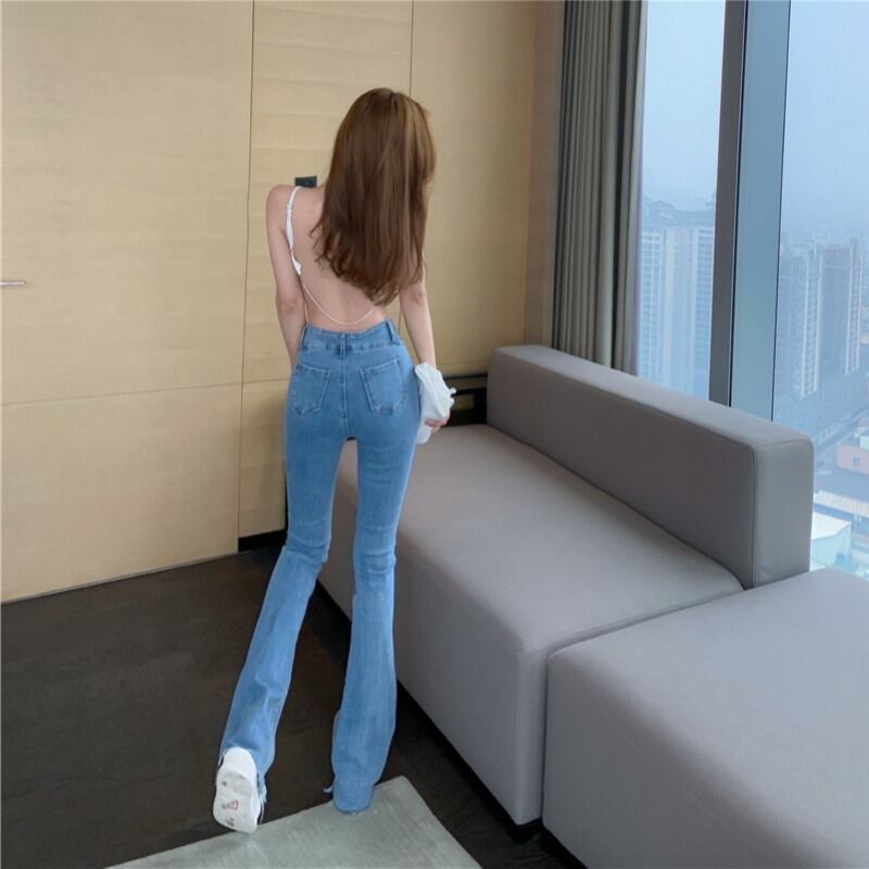 ジーンズ ウェストスリムパンツ サマースタンダード薄手 レッド レトロ 夏物 ワイドレッグ ワイドパンツ ブラックストロベリース5369537283