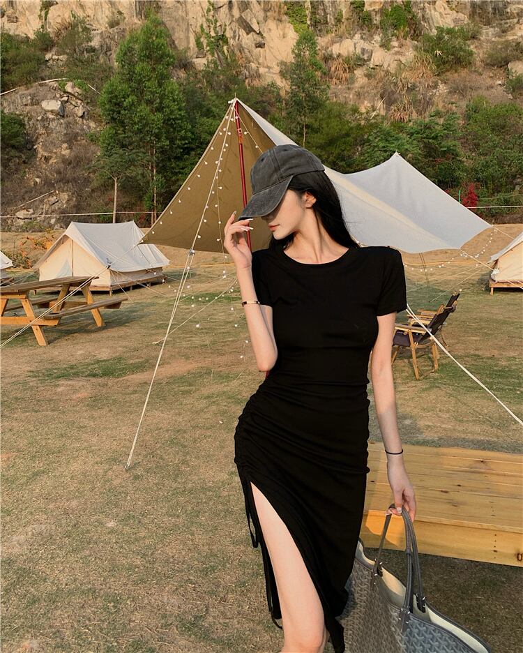 ドレス サマースカート ウェスト 夏物 ブラックストロベリース34047446107