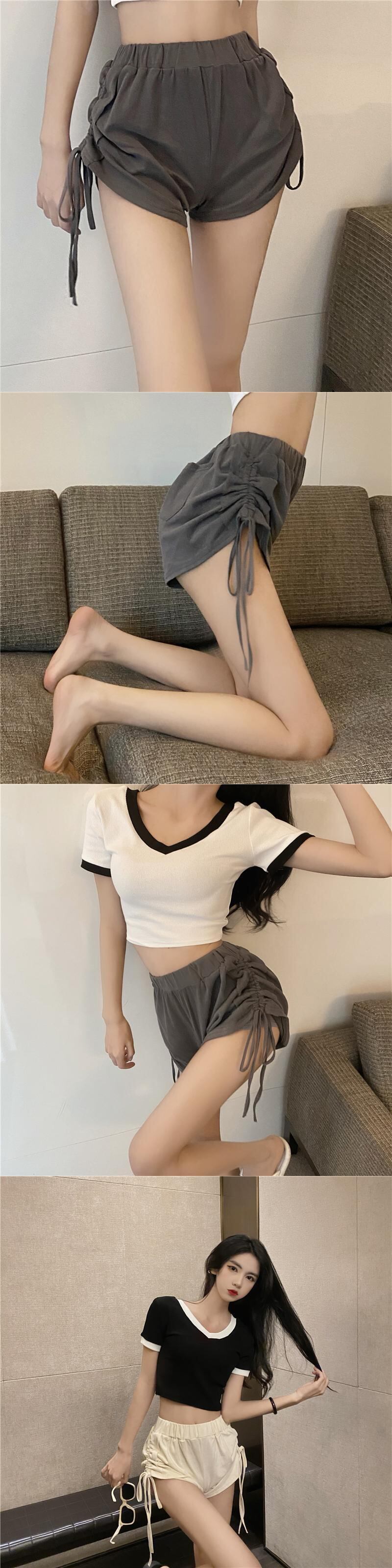 カジュアルパンツ レディースサマー薄手ギャザーハイウェストウェストショーツ 夏物 ブルマー ブラックストロベリース94994999656