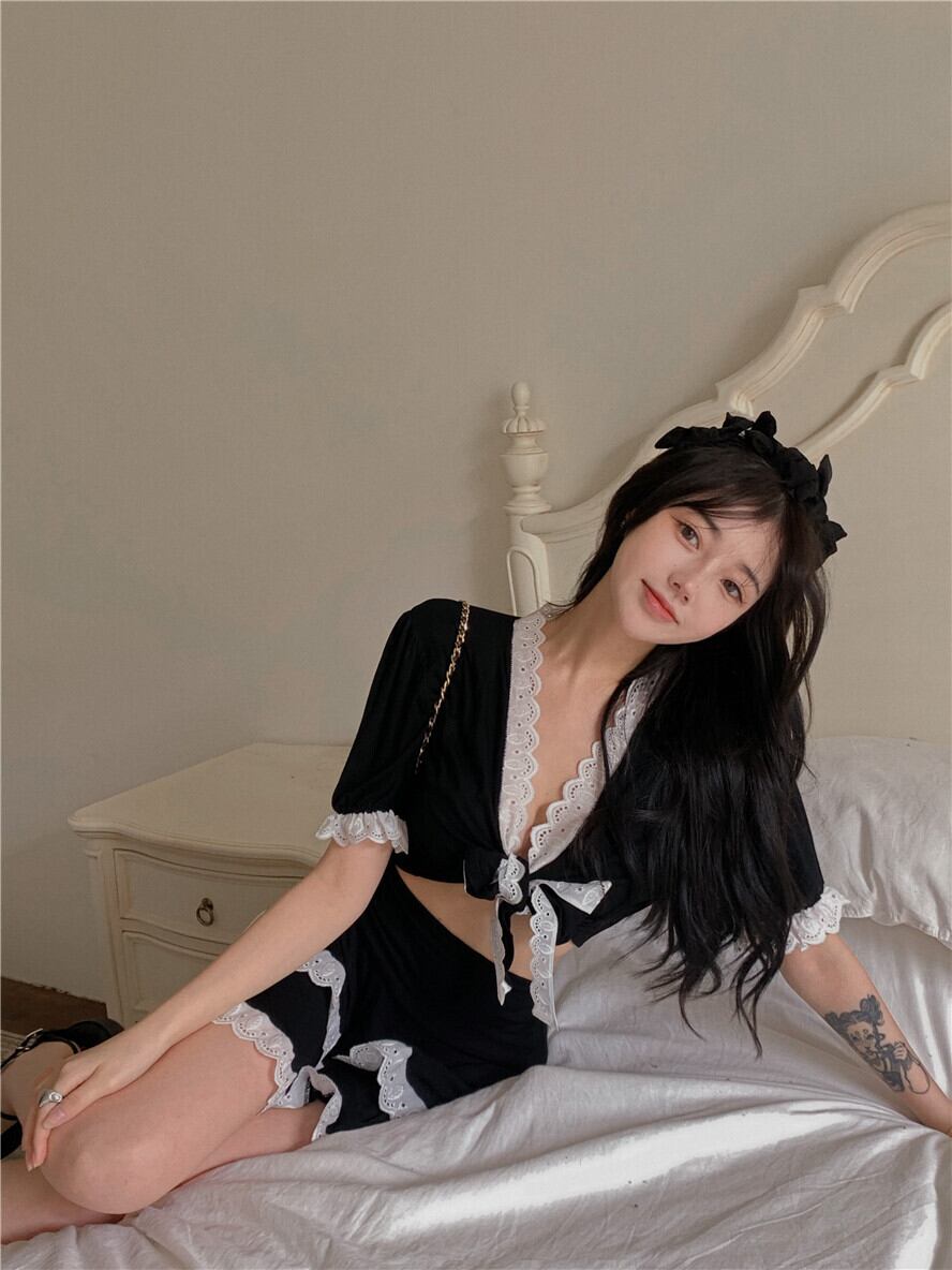 サマースタイルブラックスカート セット 夏物 ブラックストロベリース41828224194