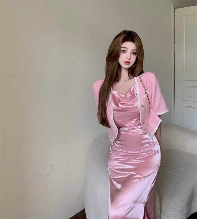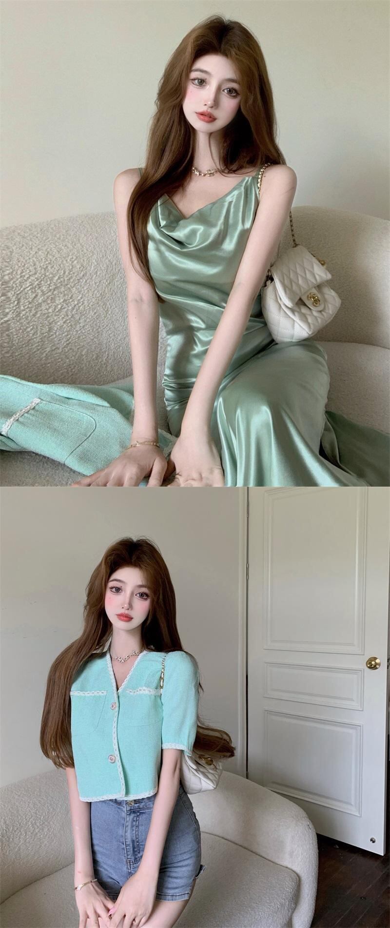 色:ピンクのジャケット,グリーンジャケット,ピンクのサスペンダードレス,緑のドレス
