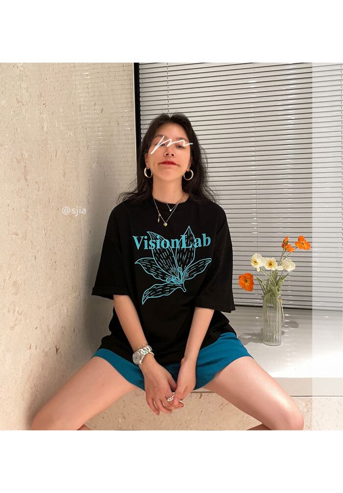 Tシャツ スタイルルーズブラックトップス サマー 夏物 ブラックストロベリース9325480017