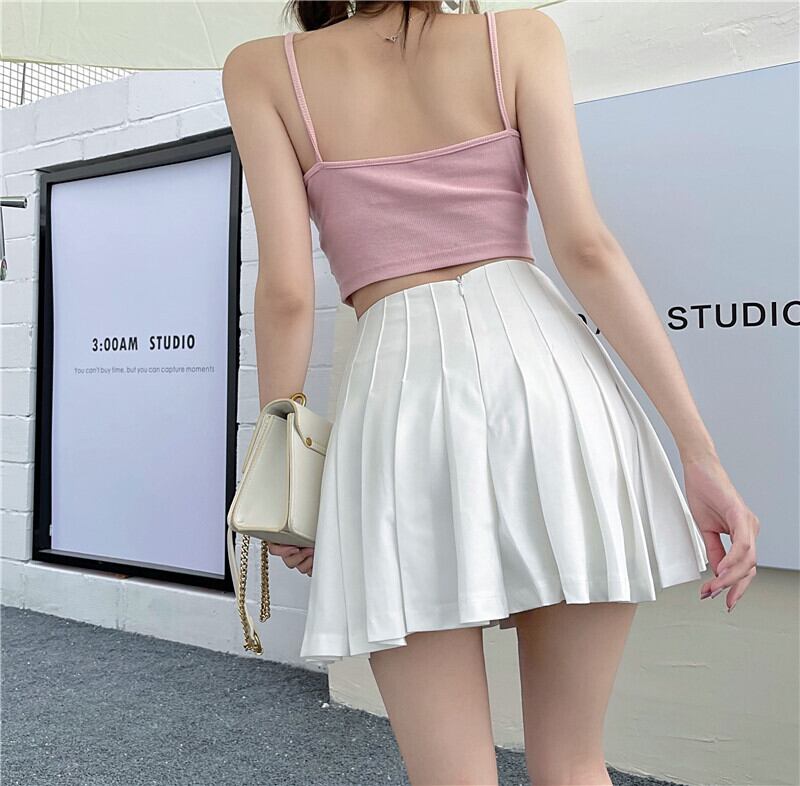 スタイルプリーツスカート サマーハイウェストウェストAラインショートグレー 夏物 ブラックストロベリース39051677899
