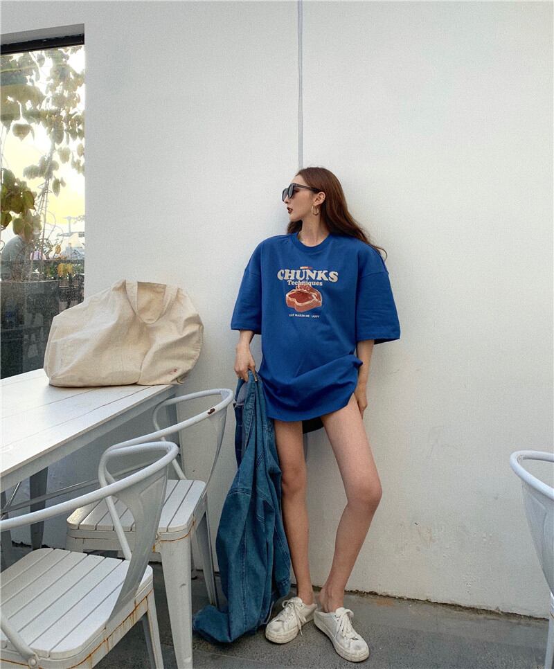 Tシャツ ロングブラックスリーブルーズプリントトップス スプリングサマー 春物 夏物 ブラックストロベリース36099301148
