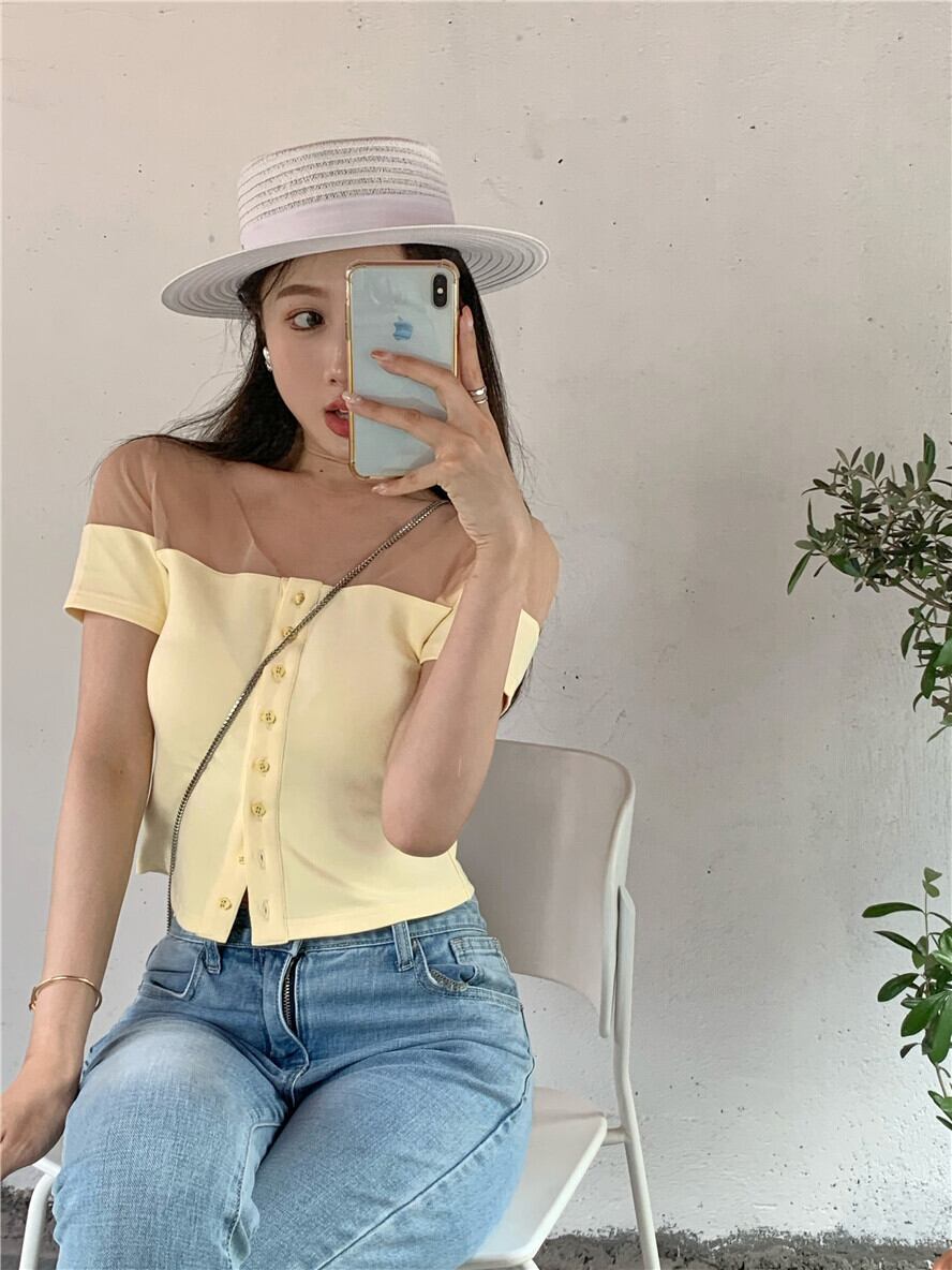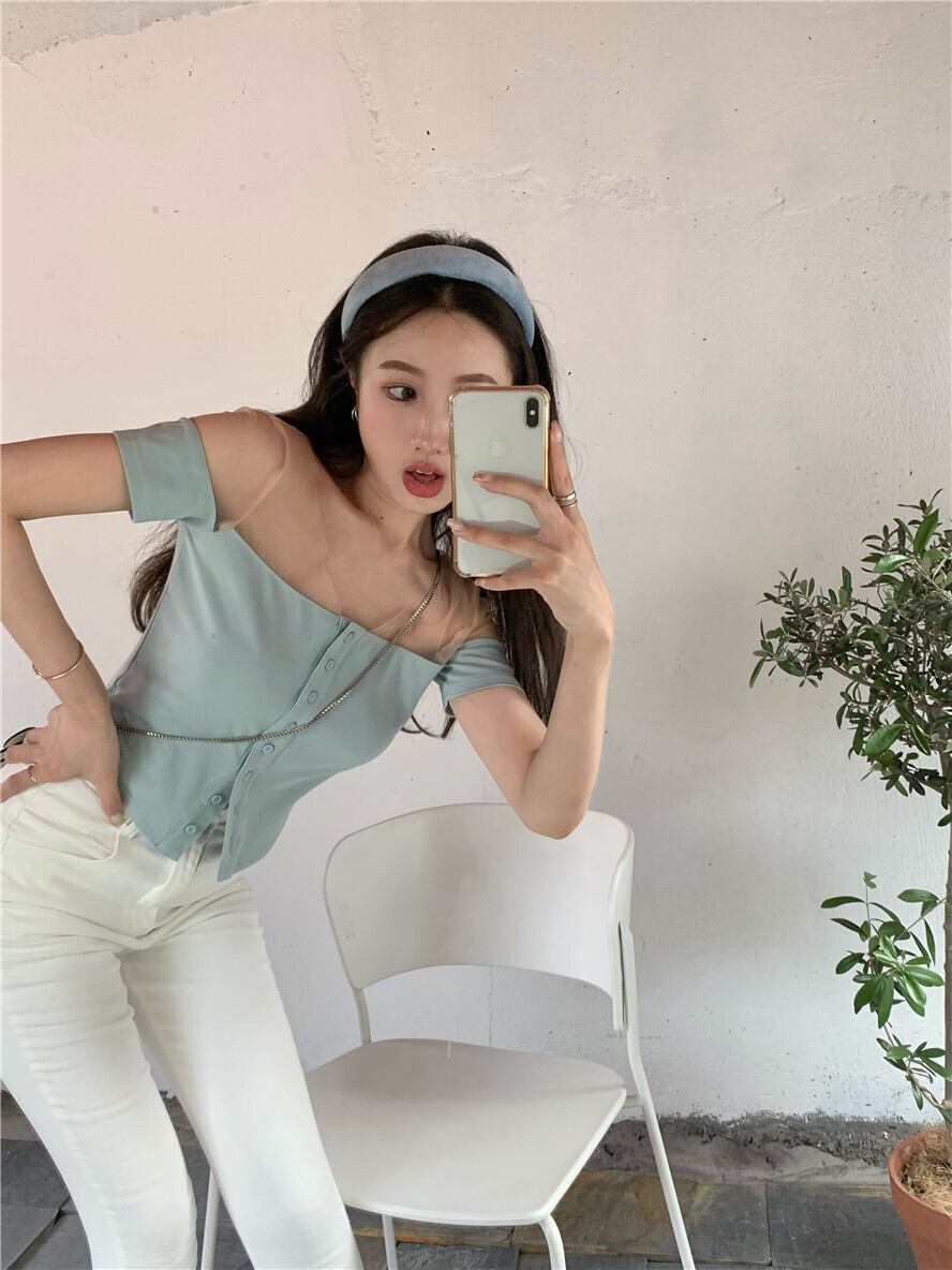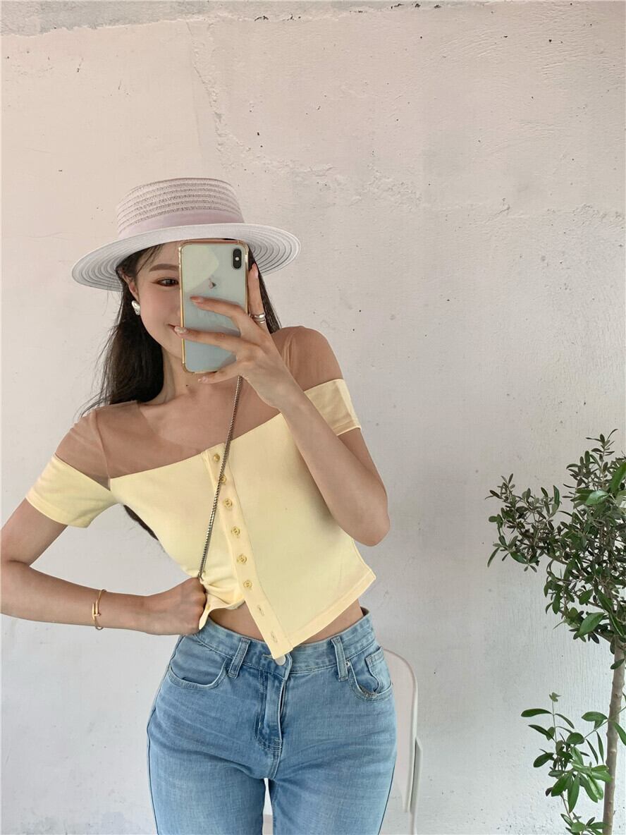Tシャツ ショートメッシュワンショルダースリムトップス サマースタイル 夏物 ピュア ステッチ ブラックストロベリース78421599527