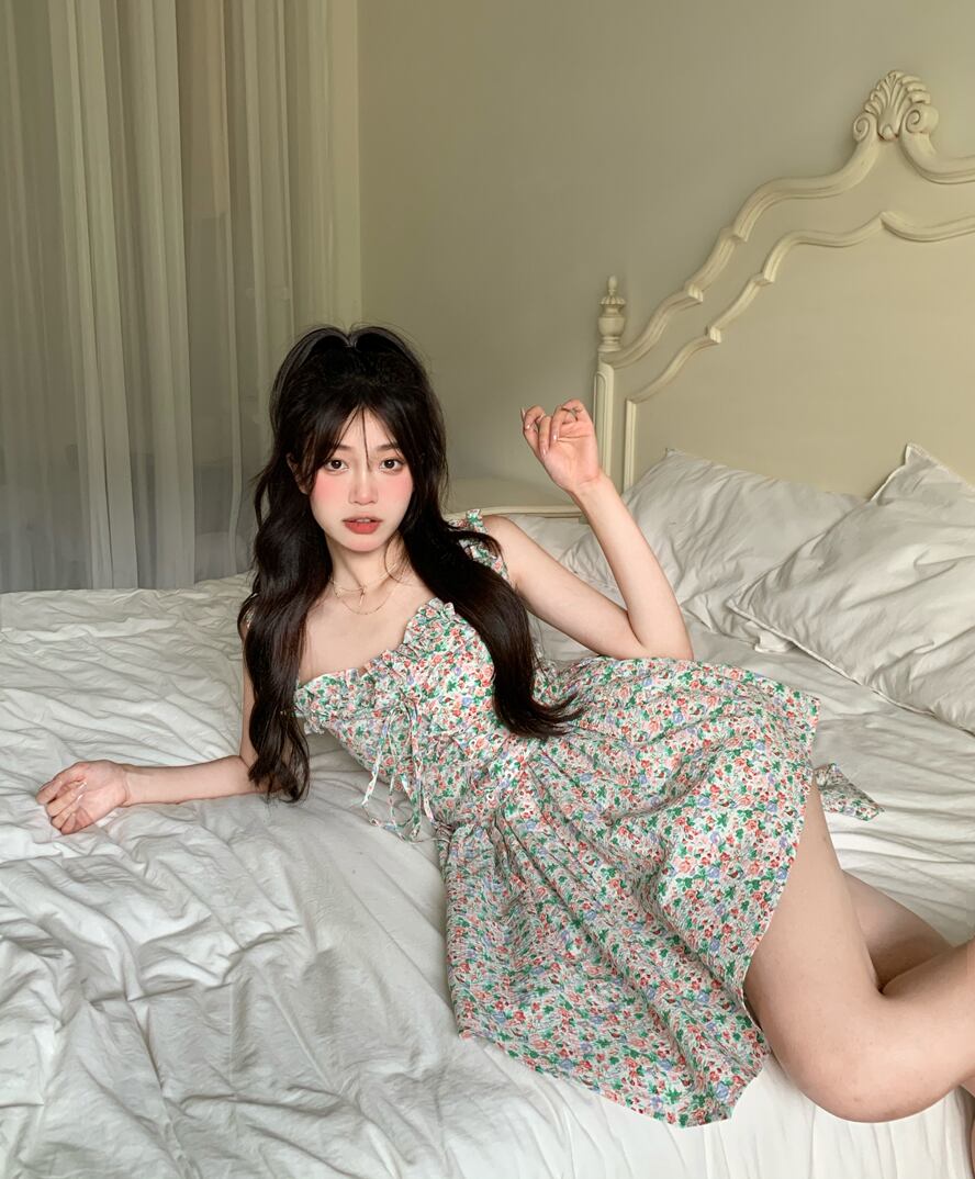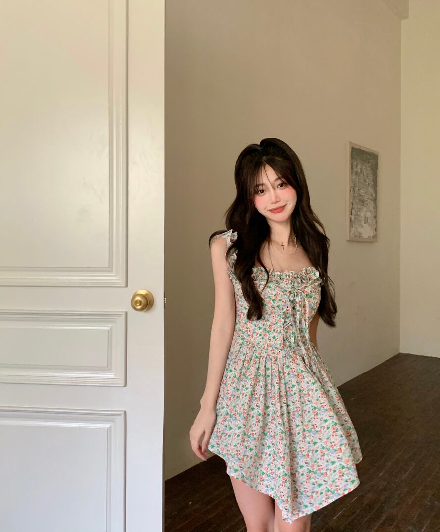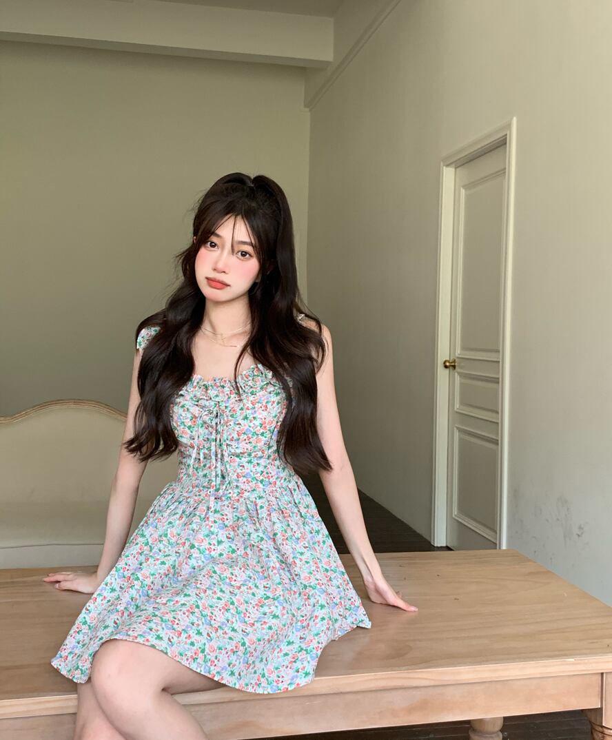 フローラルドレス サマースタイルショートスカート ウェスト 夏物 花柄 ブラックストロベリース25971171973