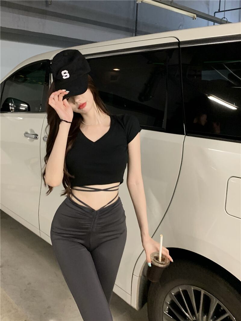 カジュアルパンツ サマー薄手ハイウェスト レッド レース 夏物 タイツ ストッキング ソックス レースアップ ブラックストロベリース10492874057