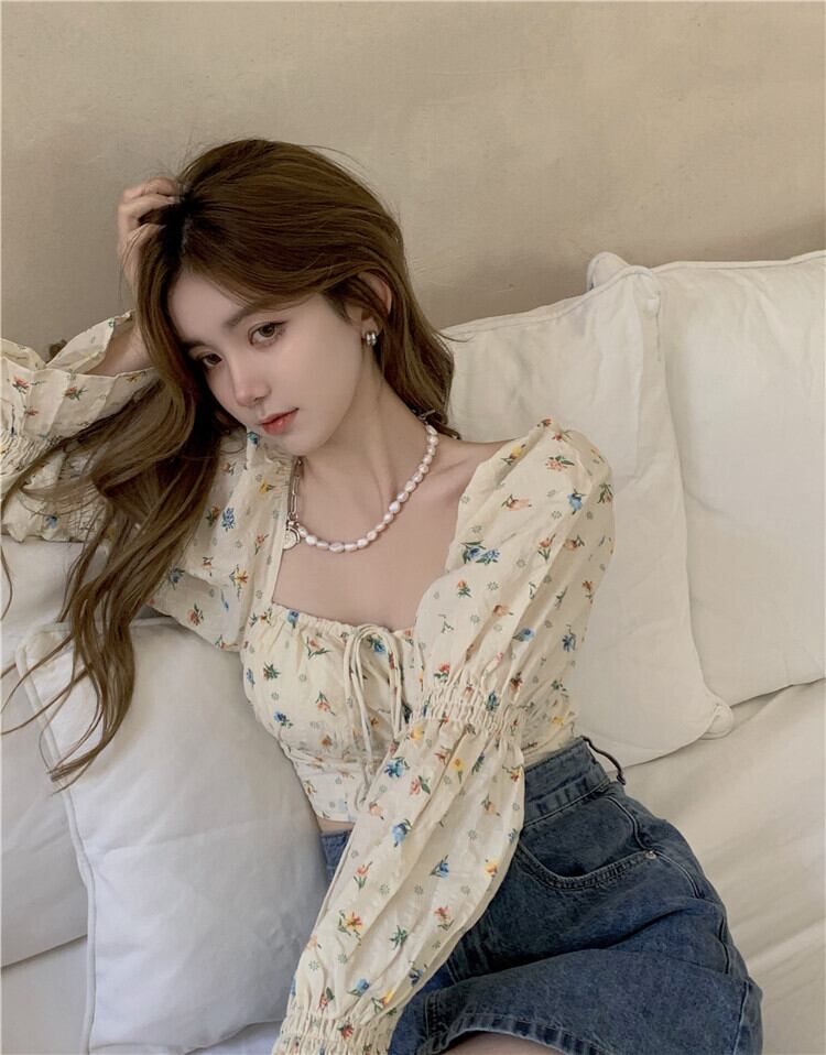 シャツ フローラルサマーショートトップス ロング 夏物 花柄 スクウェア ブラックストロベリース83144823625